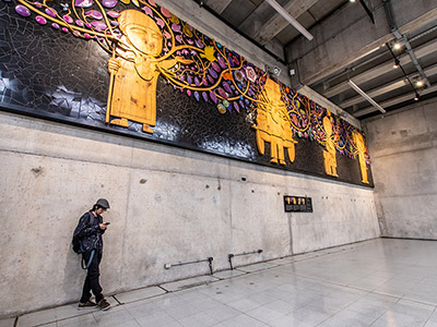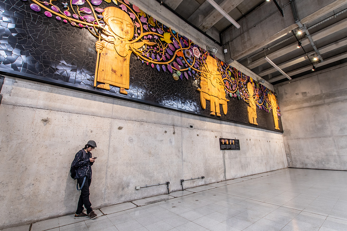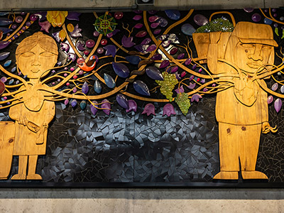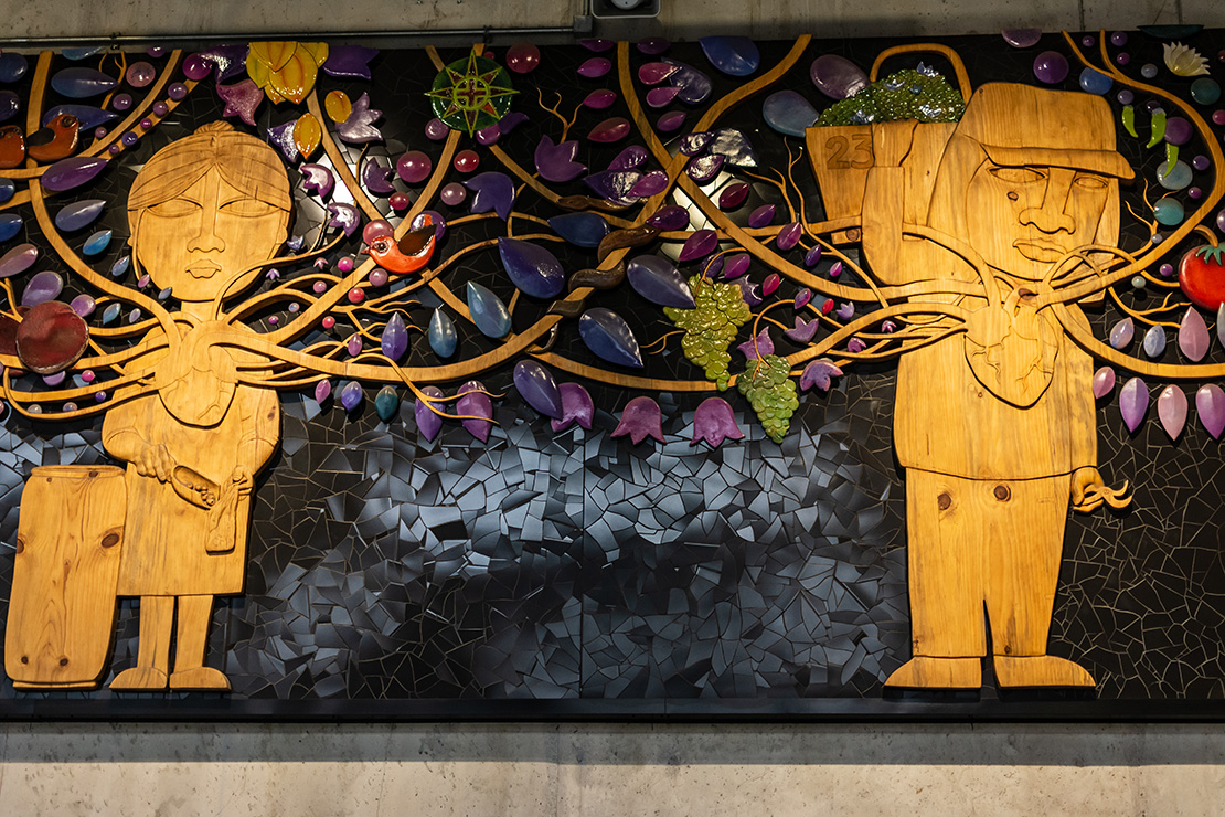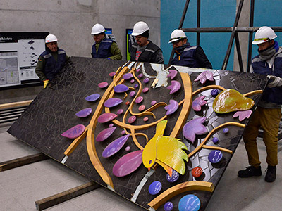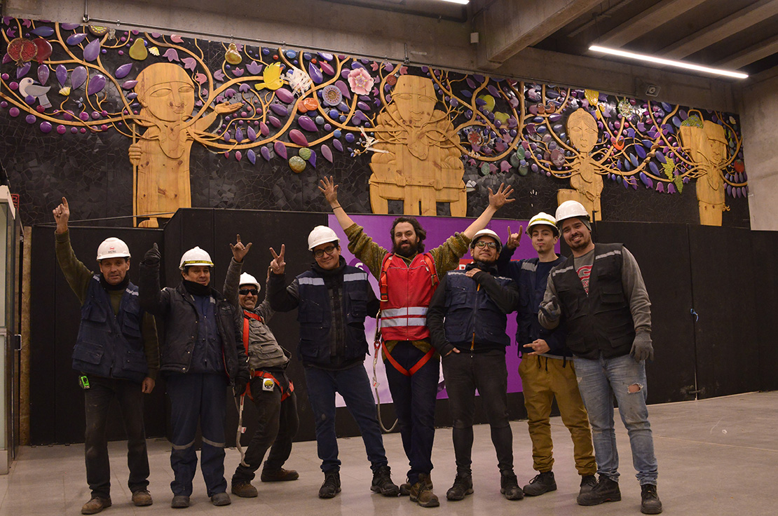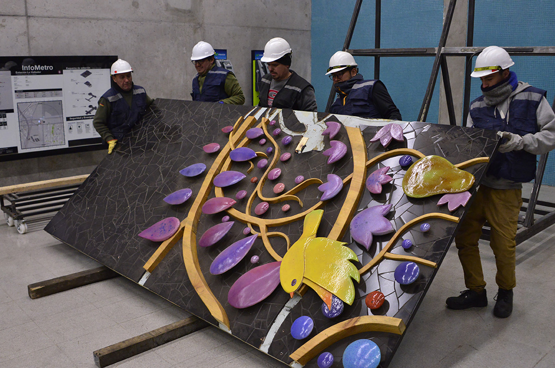 El resultado de esta obra es tan impresionante como el proceso que tuvo su creación y sobre todo, su instalación. Un proyecto que refleja la pasión y el corazón puesto en cada tarea y jornada de quienes dan vida a la feria de Lo Valledor. Más de 4 toneladas pesa en total esta obra, que obligó a desarrollar un sistema de poleas dentro de la estación para lograr instalarla. Todo ese trabajo representa la pasión y esfuerzo humano para producir la tierra en beneficio de las personas.