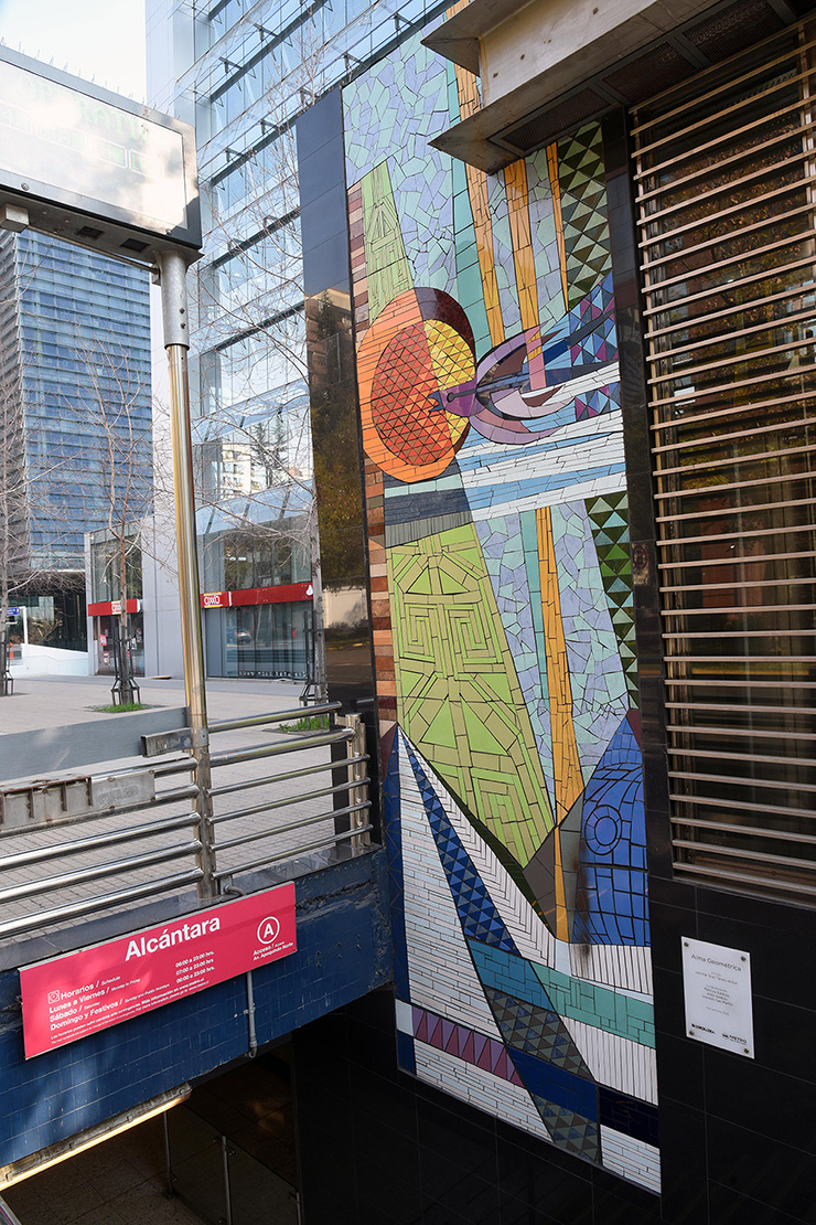 Los nuevos murales de mosaico de las estaciones Alcántara y El Golf se suman a los 12 mil metros cuadrados de superficie ya existentes de murales y otras intervenciones artísticas al interior de la red de Metro.
