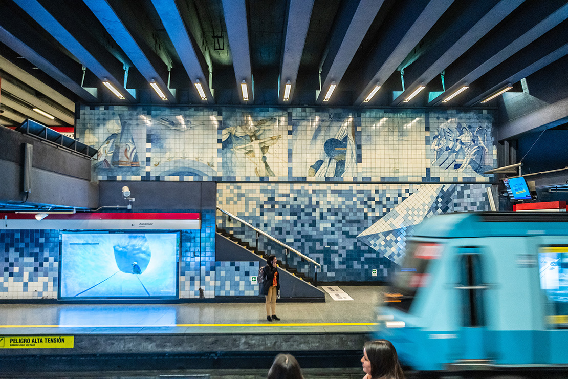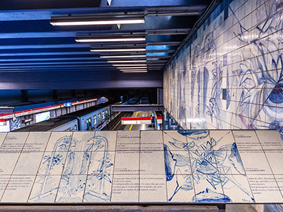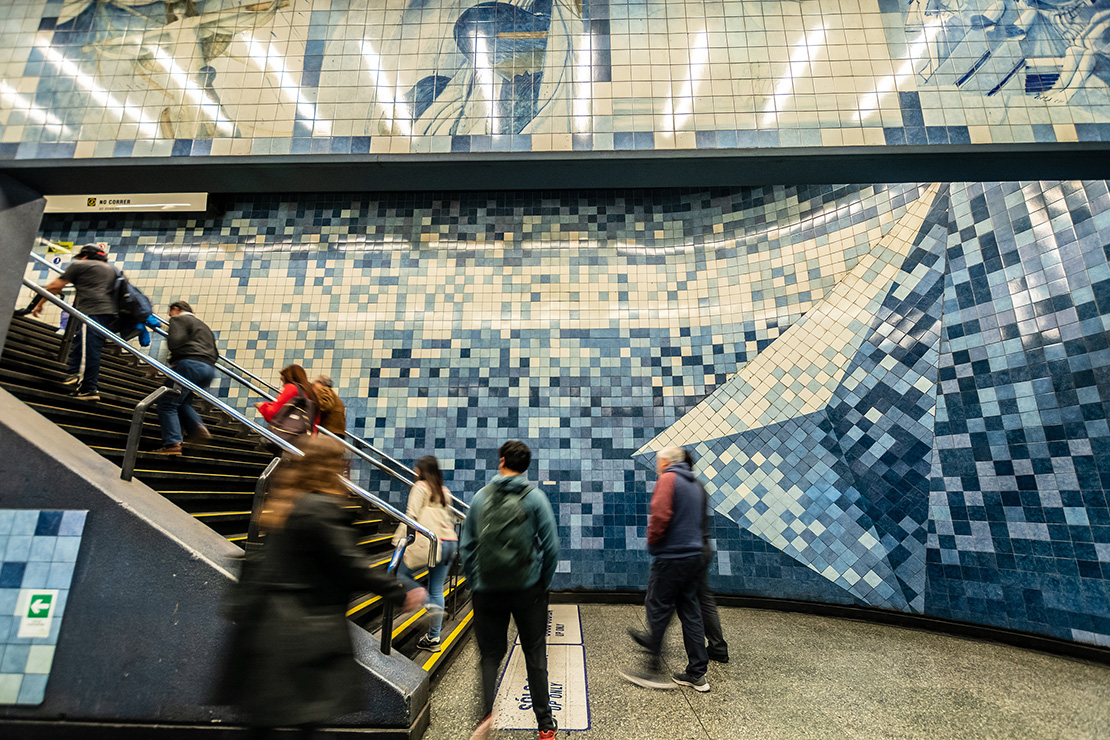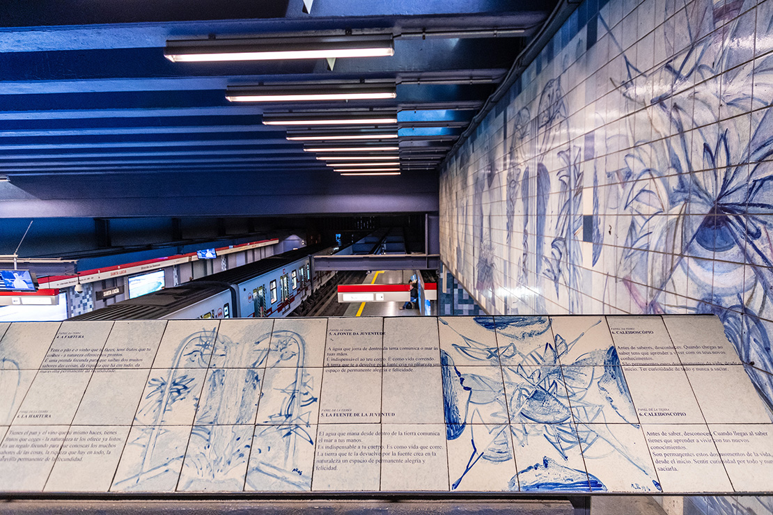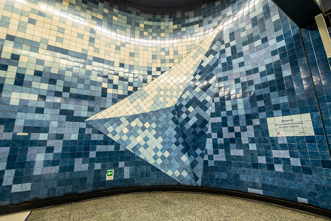 Corría 1995 y Portugal se preparaba para celebrar la Expo Mundial, que en ese entonces tenía como tema principal los océanos. El Metro de Lisboa se unió a los festejos regalando obras a tres metros del mundo. En América el Metro de Santiago fue el escogido, ya que ambos se encontraban en proceso de expansión. Tal como lo hicieran los antiguos exploradores y navegantes de la península Ibérica al llegar a nuestro continente por primera vez, esta obra llegó hasta Santa Lucía para cubrirla de historia y homenajear las grandes hazañas.