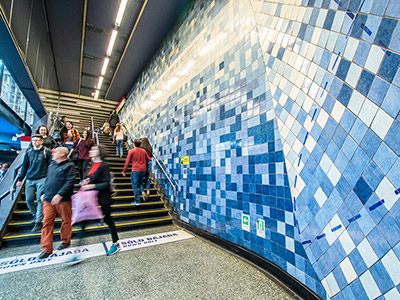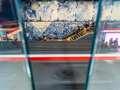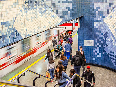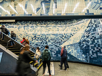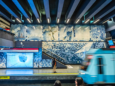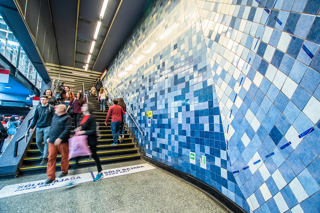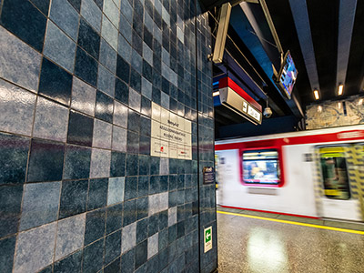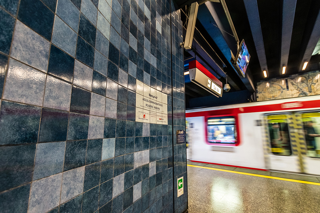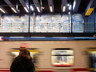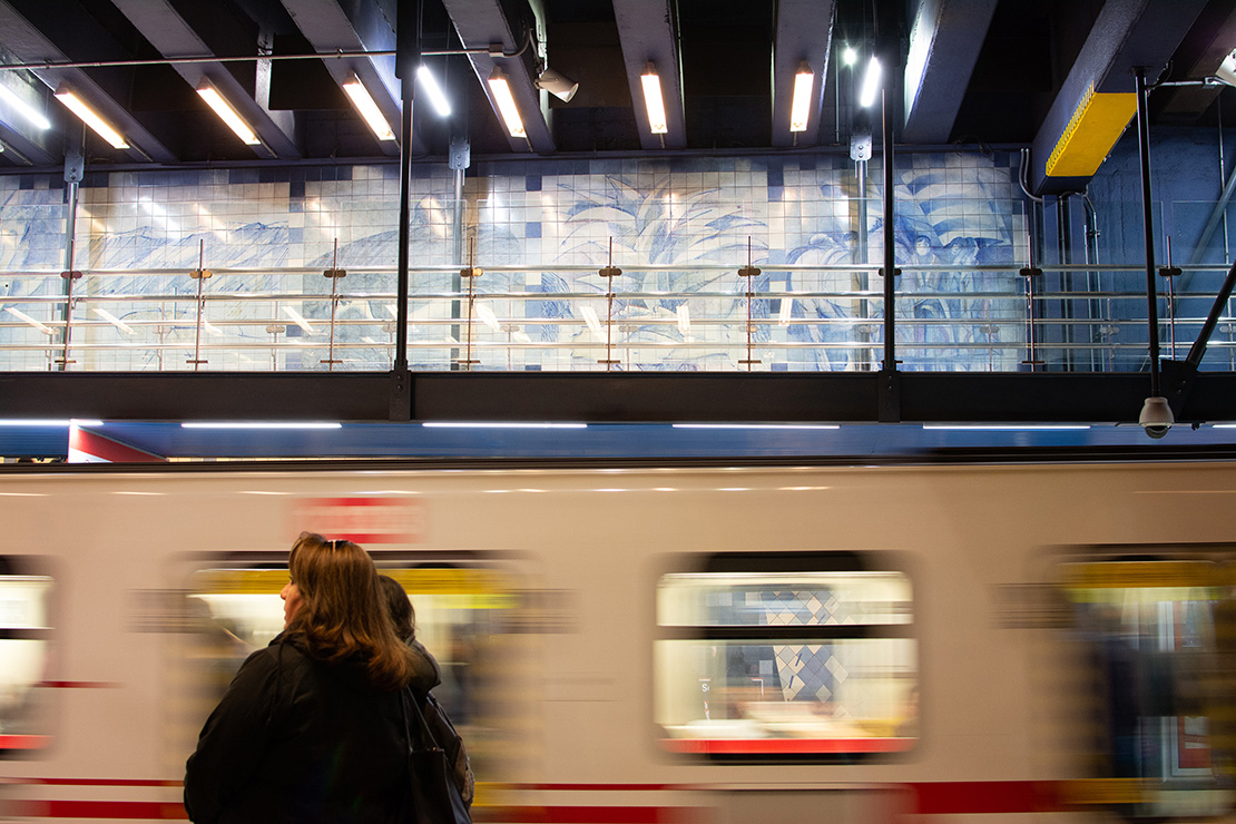 Corría 1995 y Portugal se preparaba para celebrar la Expo Mundial, que en ese entonces tenía como tema principal los océanos. El Metro de Lisboa se unió a los festejos regalando obras a tres metros del mundo. En América el Metro de Santiago fue el escogido, ya que ambos se encontraban en proceso de expansión. Tal como lo hicieran los antiguos exploradores y navegantes de la península Ibérica al llegar a nuestro continente por primera vez, esta obra llegó hasta Santa Lucía para cubrirla de historia y homenajear las grandes hazañas.