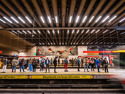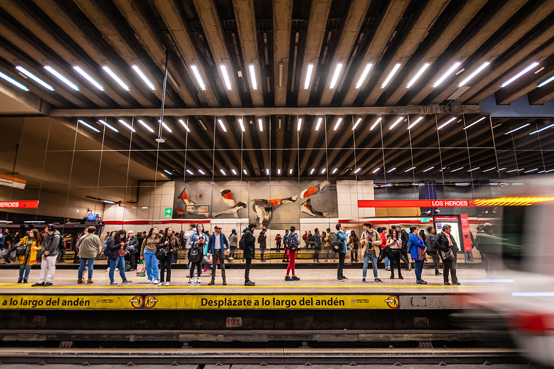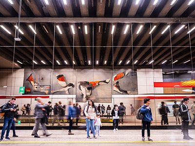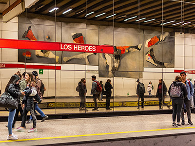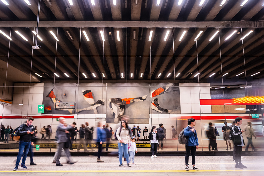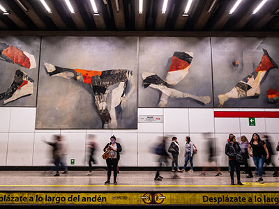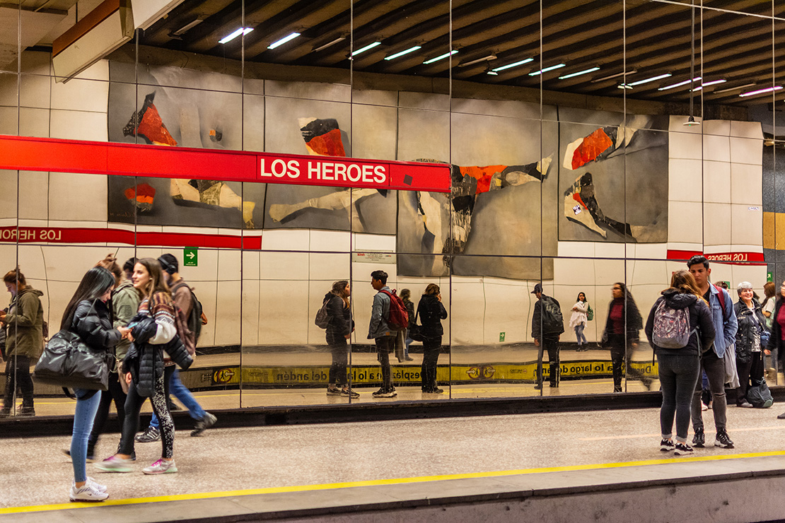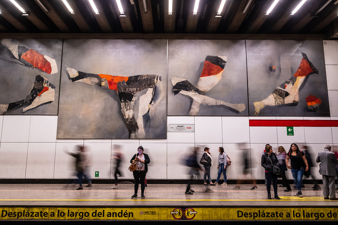 El artista creador de este óleo sobre tela fue el primer artista que trabajó en Talleres Neptuno, único gran espacio que podía albergar la Constelación de McClure. "Usé los mejores materiales, los mejores óleos. Había que proteger la obra del viento y del tiempo". En su obra es el cielo el que baja y se interna en la tierra y que además, se refleja entre el vaivén de los trenes y los pasajeros. Los primeros días tras la inauguración, las personas perdían el tren por jugar con los reflejos de esta obra instalada en ambos andenes complementariamente.