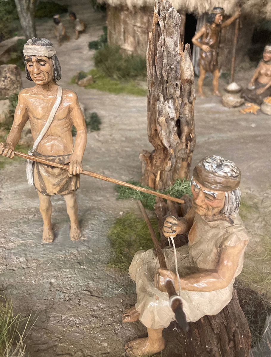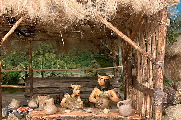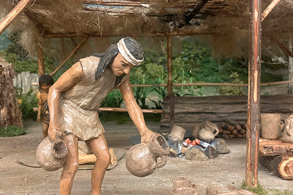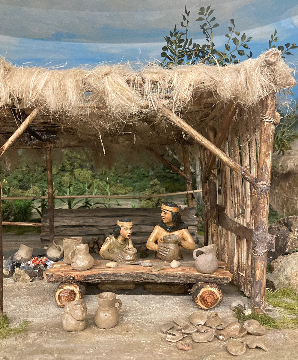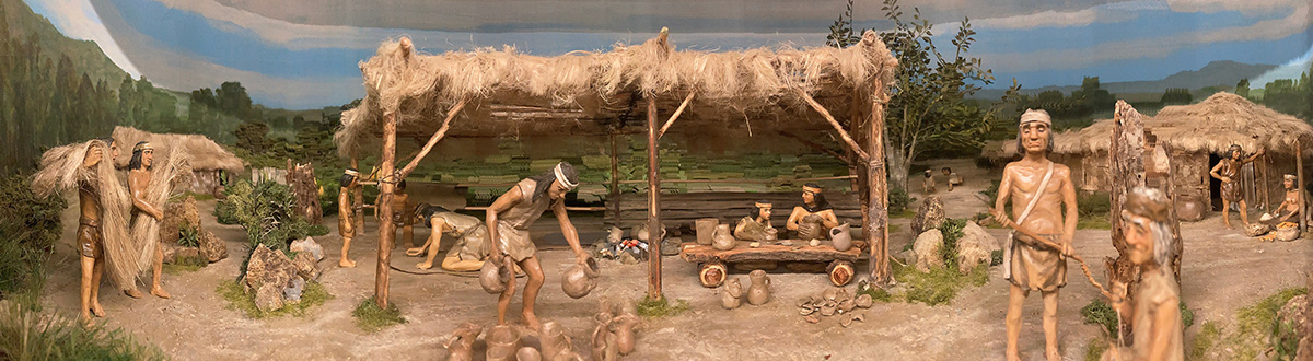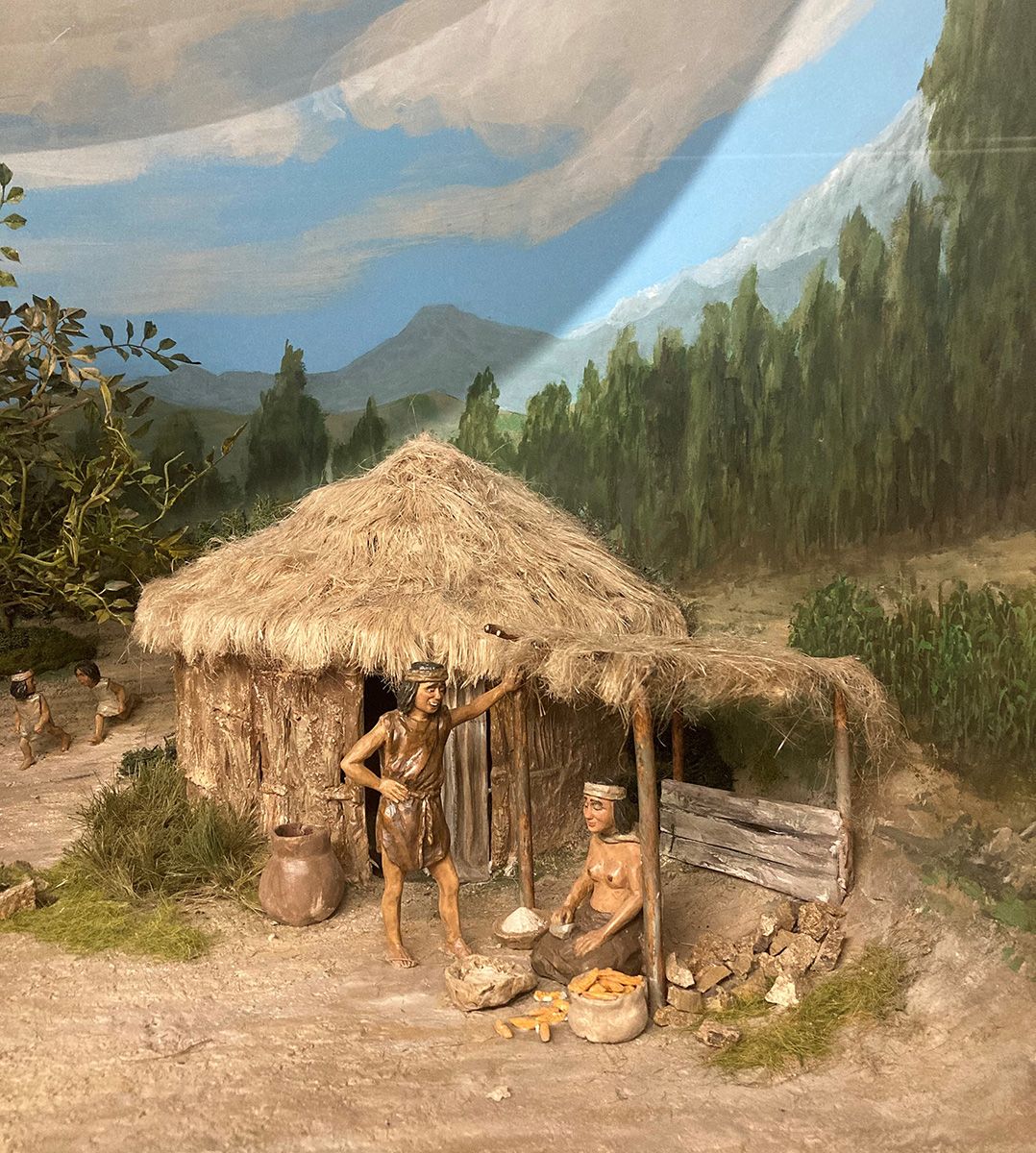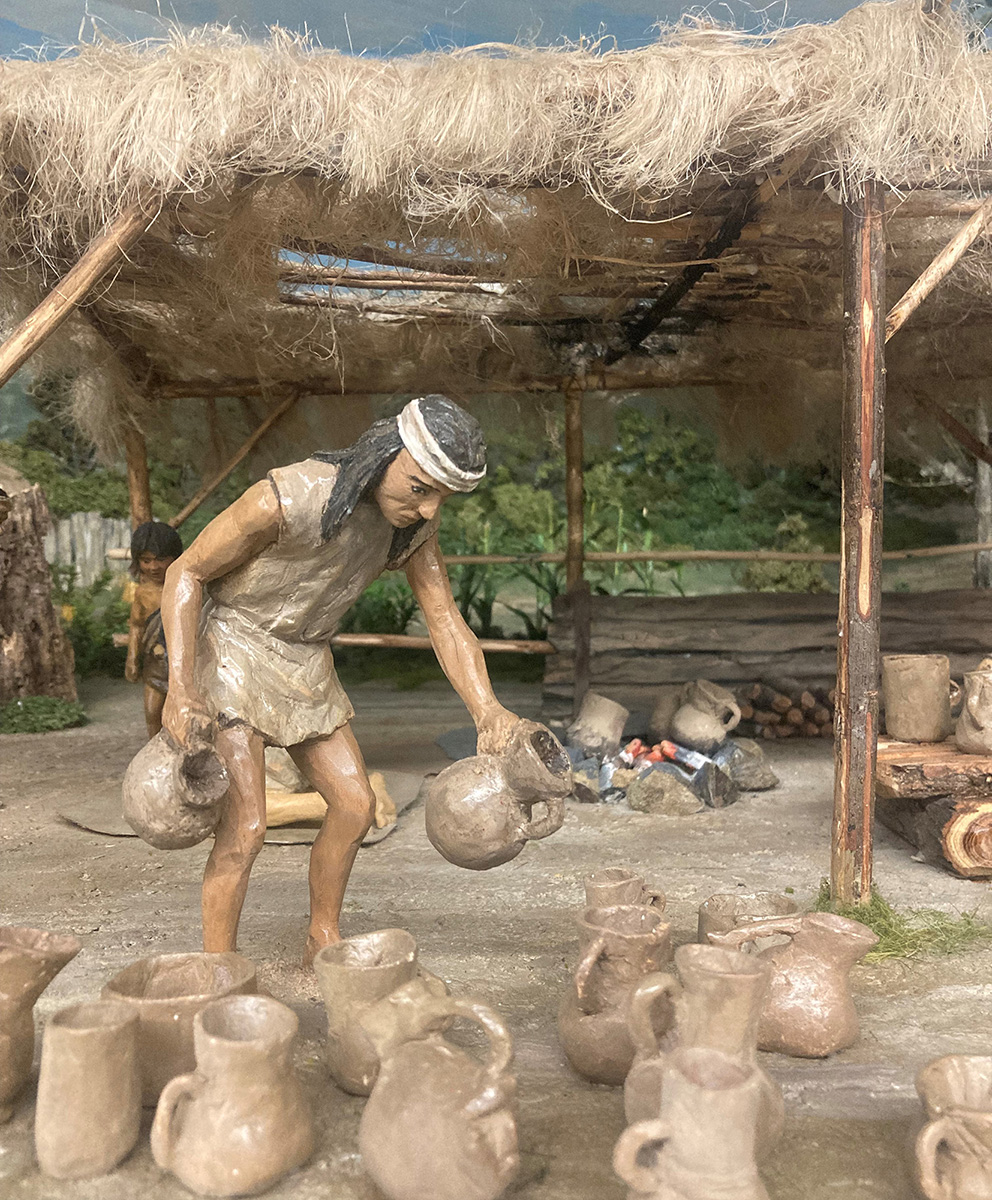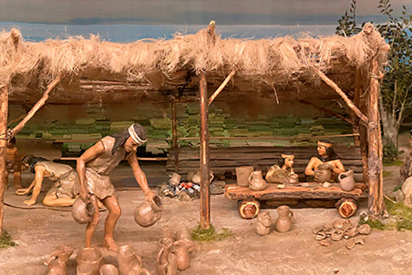 Este diorama honra y pone en valor esa cultura, representando una escena de la vida cotidiana y cómo era su ambiente doméstico con casa de material ligero y viviendas aisladas con cultivos entremedio además del lugar donde se trabajaba la alfarería.
