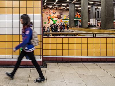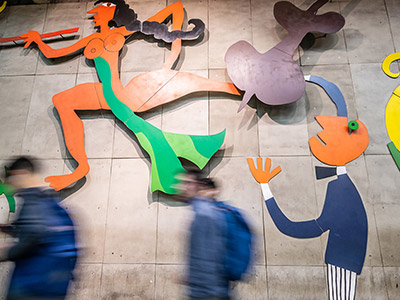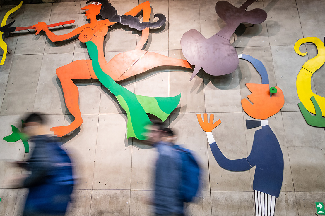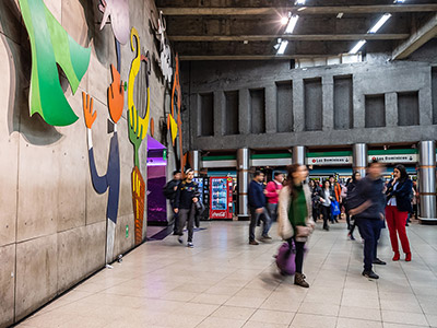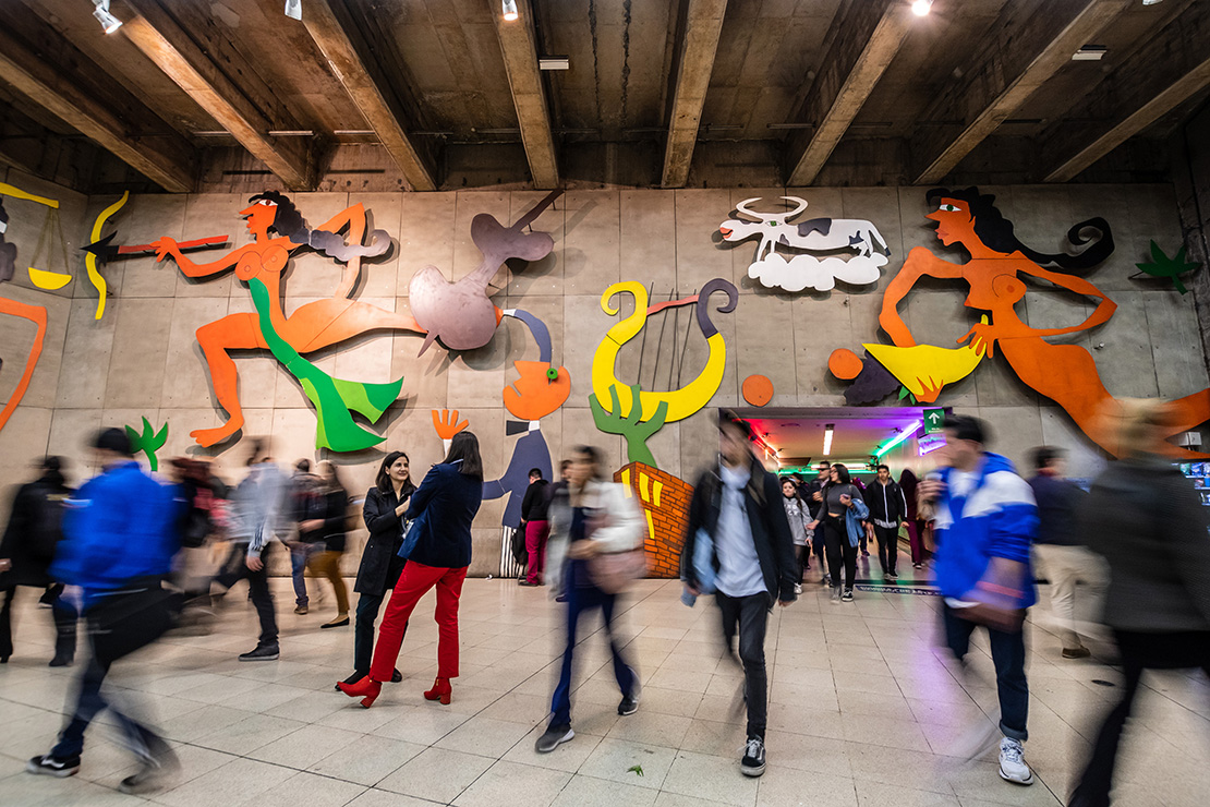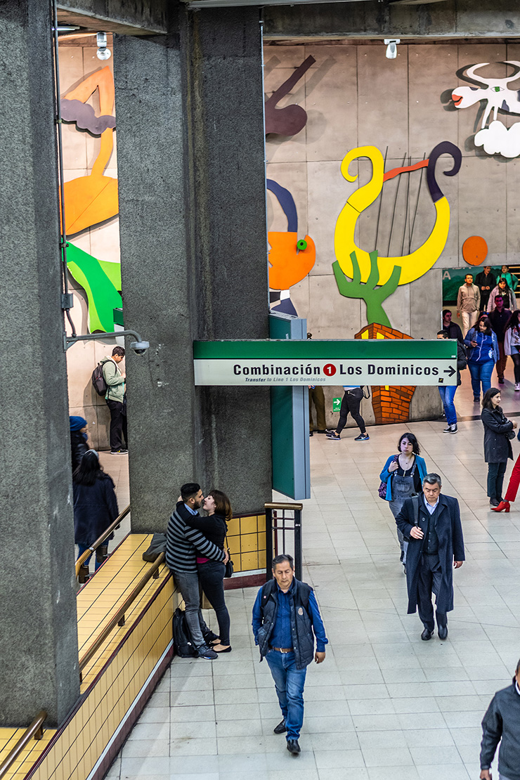Se podría decir que este artista pinta como si estuviese tocando jazz: sin saber para dónde va. Lo que sí sabe es que en esta obra plasmó su amor por la ciudad de Santiago. "Esta es una ciudad que amo, que siempre encontré maravillosa, sobre todo en la infancia. Entonces pensé que si tenía que hacer algo que iba a quedar aquí, tenía que ser una declaración de amor". Y quiso que su amor fuese eterno. Creó su obra en metal recortado para que fuera duradero. Su intención es que cuando un niño que pasó por allí recordara esa estación con "los monos de colores. Para eso lo hice".
