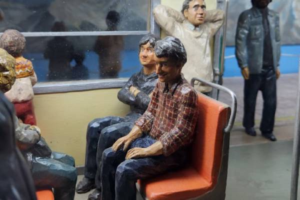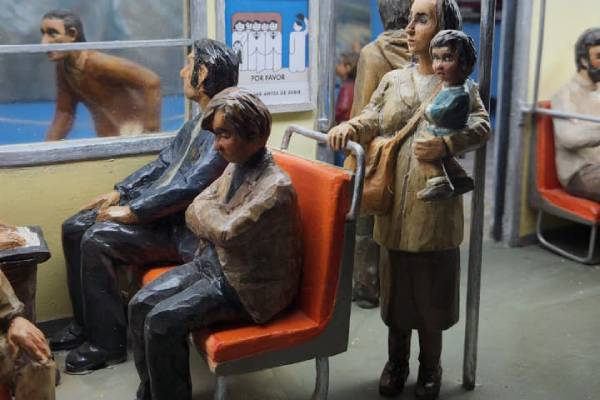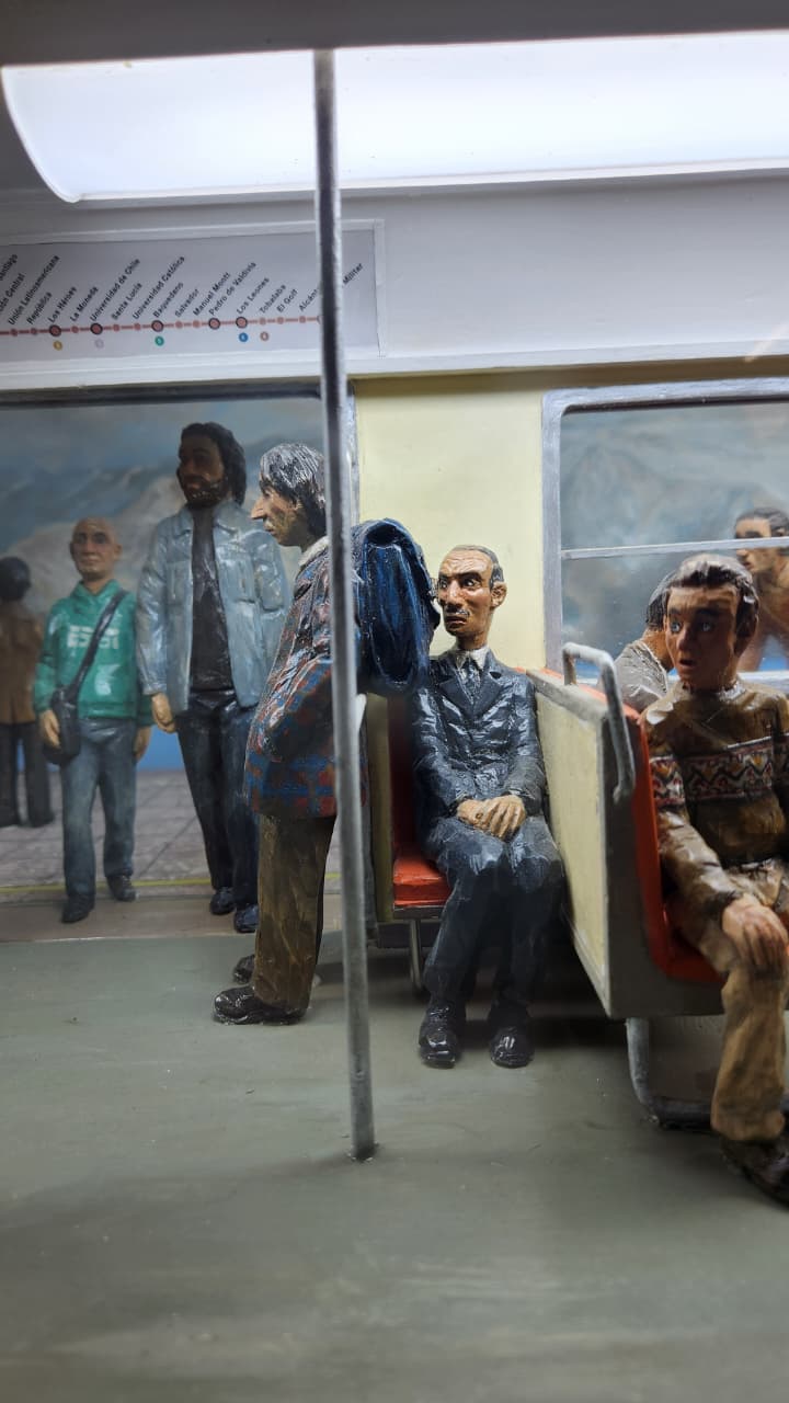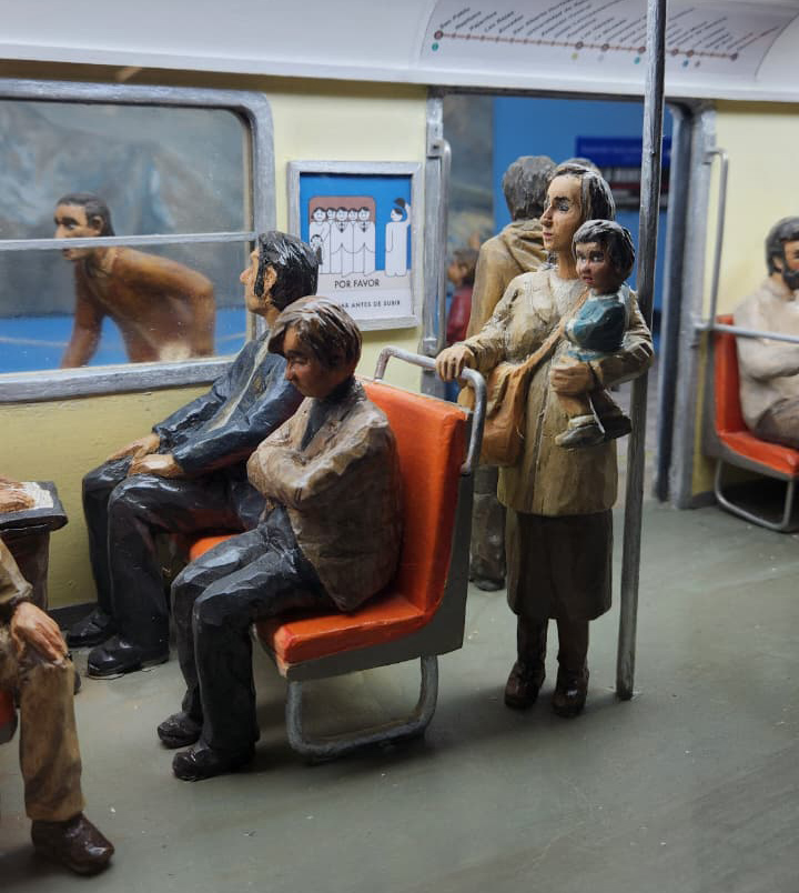 A través de 40 figuras humanas esculpidas con detalle, la obra nos invita a recordar viajes más pausados y espaciosos, funcionando como un documento visual de cómo ha evolucionado la vida cotidiana de los santiaguinos en este medio siglo.