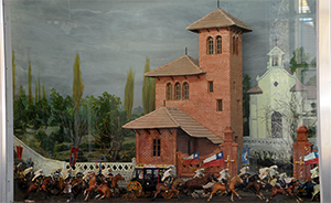 En este diorama, ambientado en 1930, se observa a los cuasimodistas regresando de su recorrido de fe y alegría por la calle San Pablo al poniente.