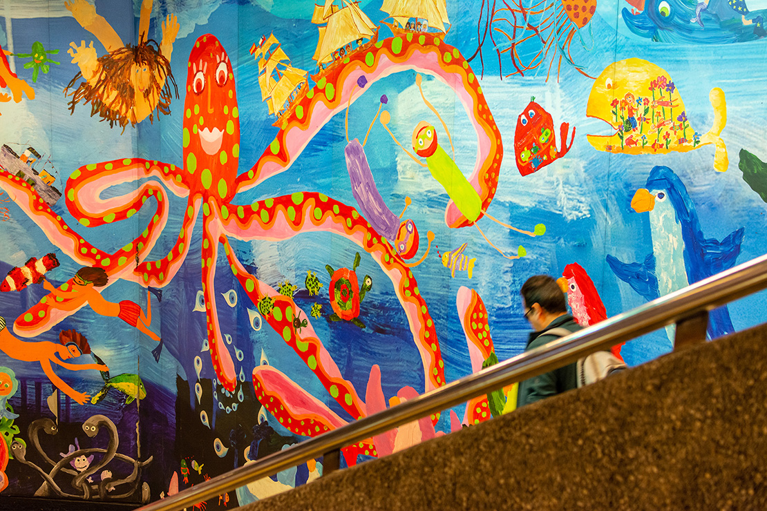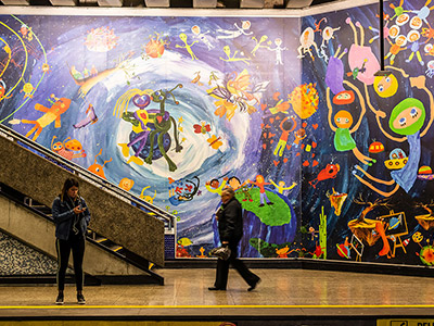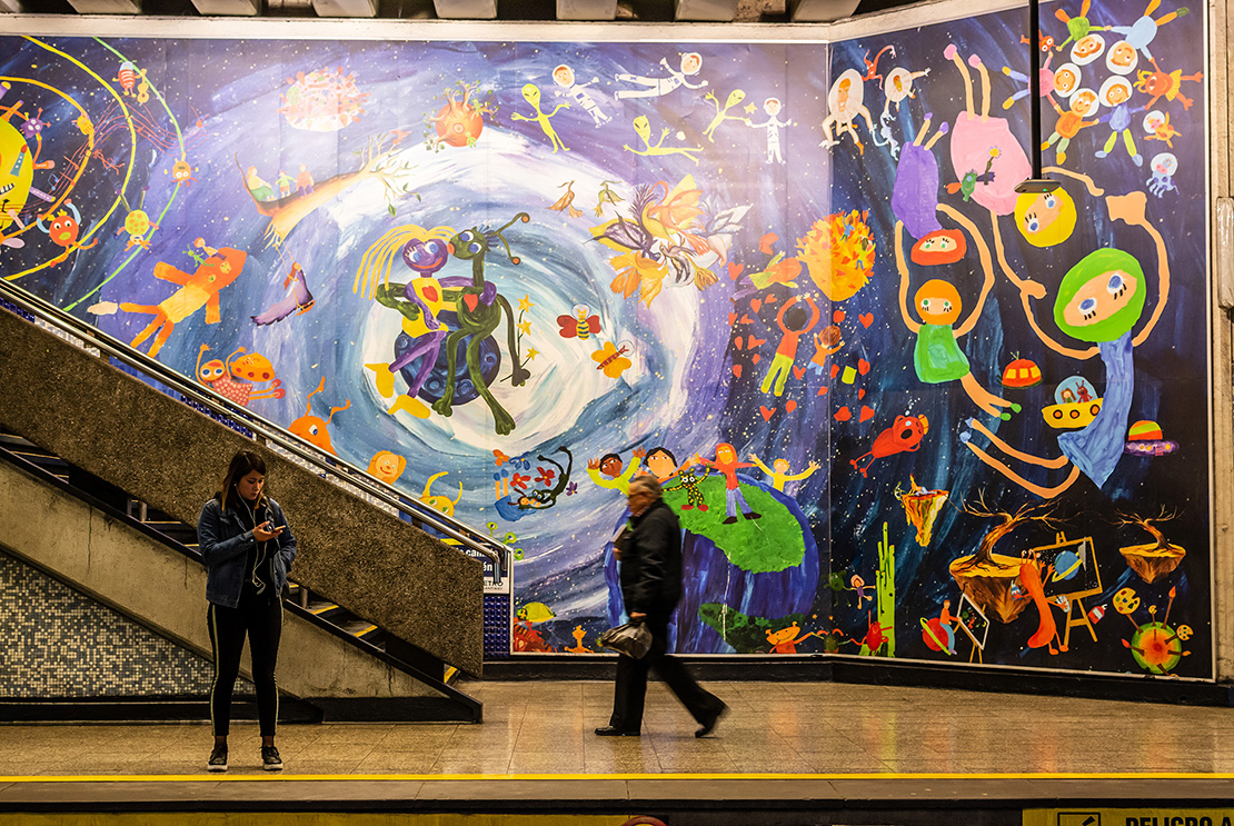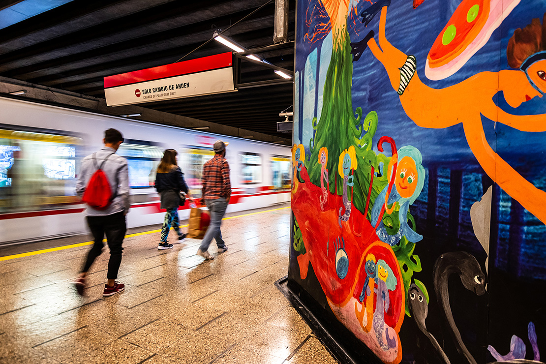 Fue el primer niño símbolo de la Teletón y hoy es un pintor de un estilo muy definido y de una incansable capacidad de gestión. Fue Artus quien movilizó a todas las personas que fue necesario para conseguir un espacio en una estación de Metro para crear una obra. Cuando finalmente lo consiguió, desistió de su idea original y prefirió invitar a los niños del Taller de Arte de la Teletón a crear estos cuatro murales ubicados en la estación Ecuador, la que lleva precisamente hasta el Instituto de Rehabilitación Infantil de Santiago.