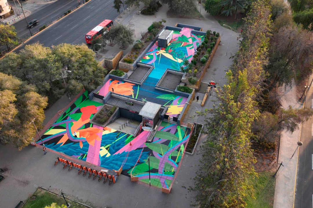 La ubicación de este mural destaca como un punto verde dentro de la ciudad, ya que se ubica en la explanada de la superficie de la estación Salvador de Línea 1, que a su vez está inmersa en el Parque Balmaceda de la comuna de Providencia. Además, fue realizada con Photio, un aditivo que se agrega a la pintura que simula el proceso de la fotosíntesis, y limpia el aire con el efecto de dos árboles maduros por metro cuadrado.