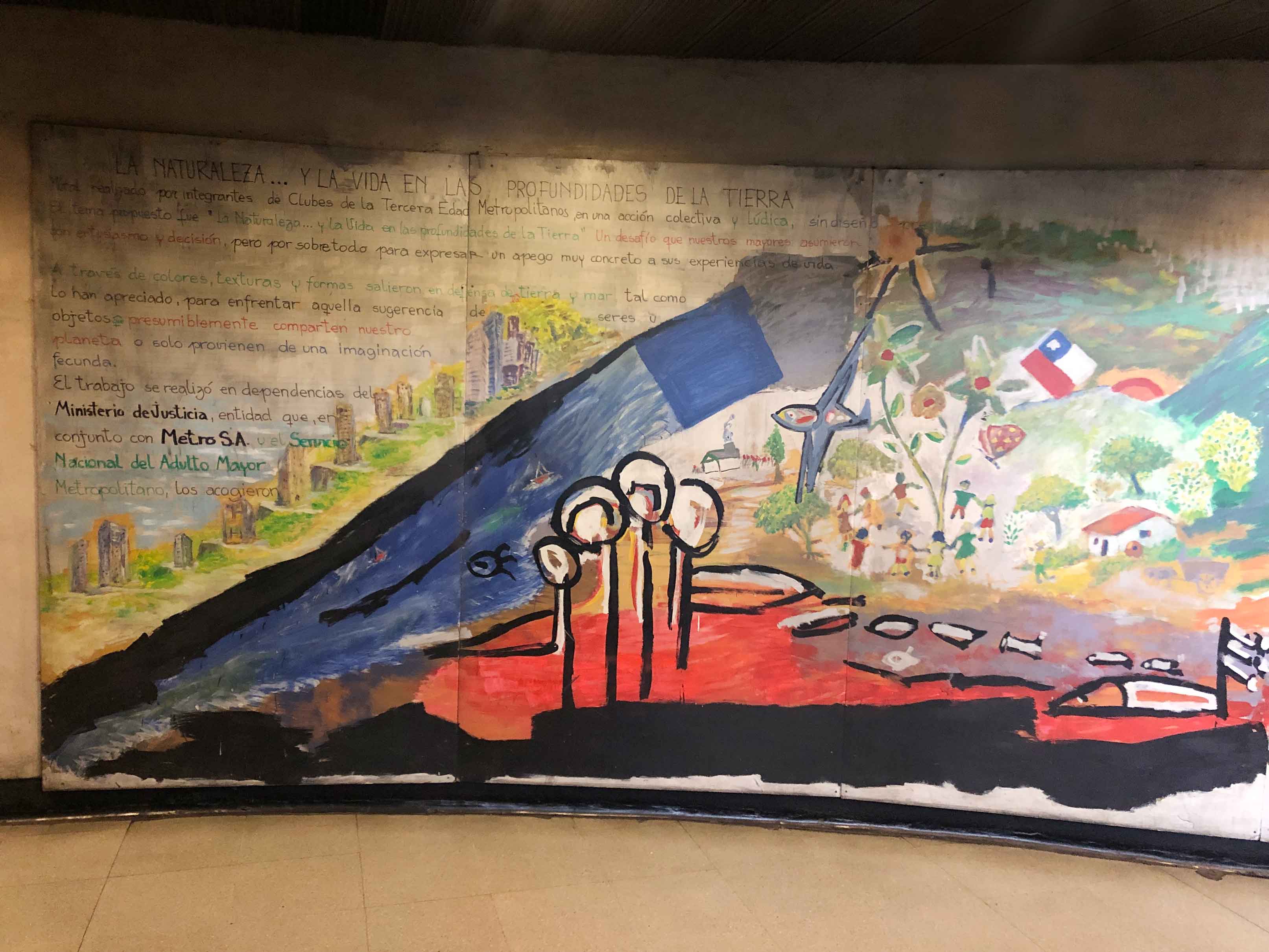 Este MetroArte fue realizado por integrantes de Clubes de Tercera Edad Metropolitanos en una acción colectiva y lúdica sin diseño previo. El tema propuesto fue "La Naturaleza y la Vida en las profundidades de la Tierra", un desafío que los adultos mayores asumieron con entusiasmo y decisión, pero por sobre todo para expresar un apego muy concreto a sus experiencias de vida.