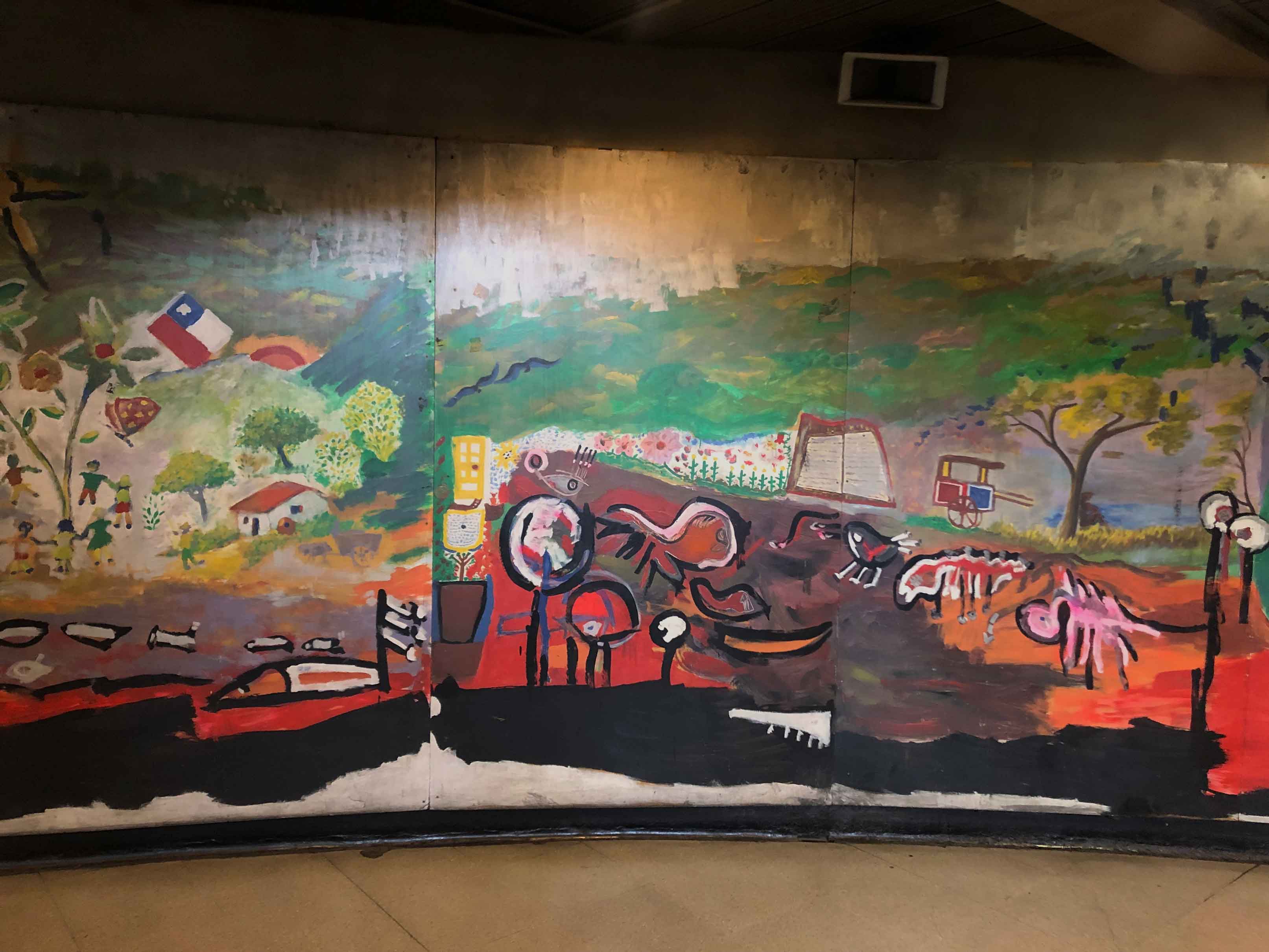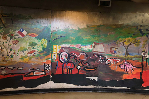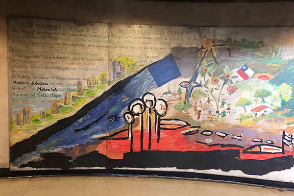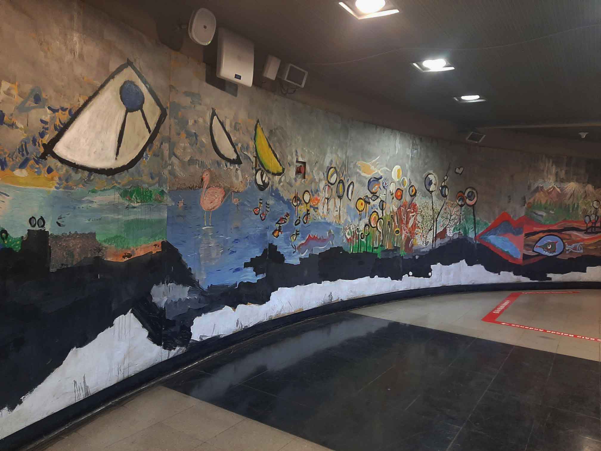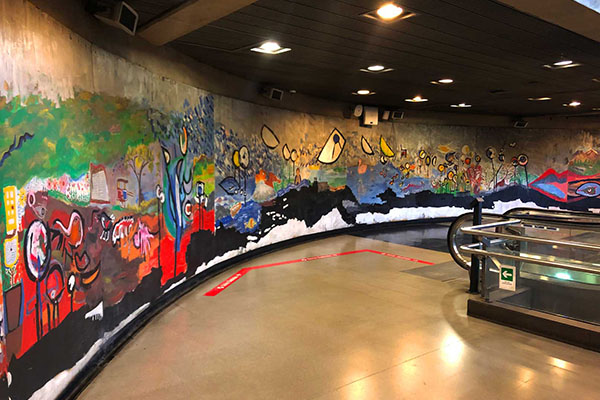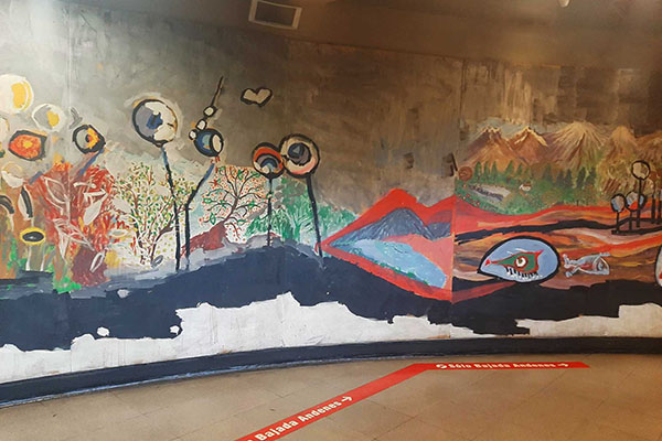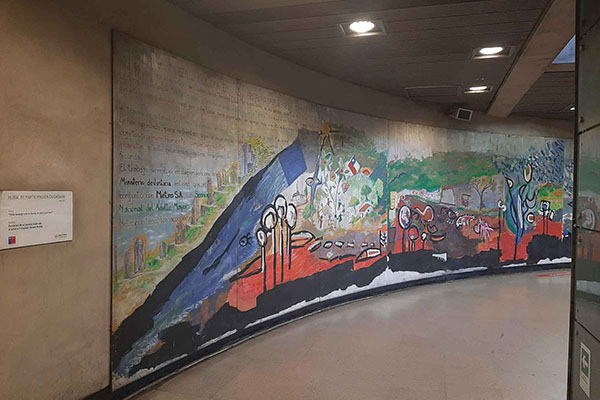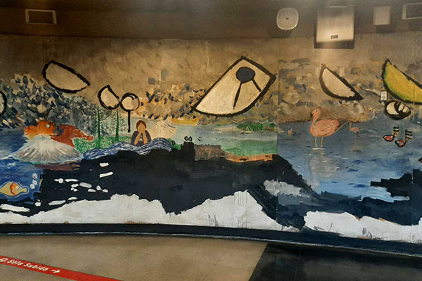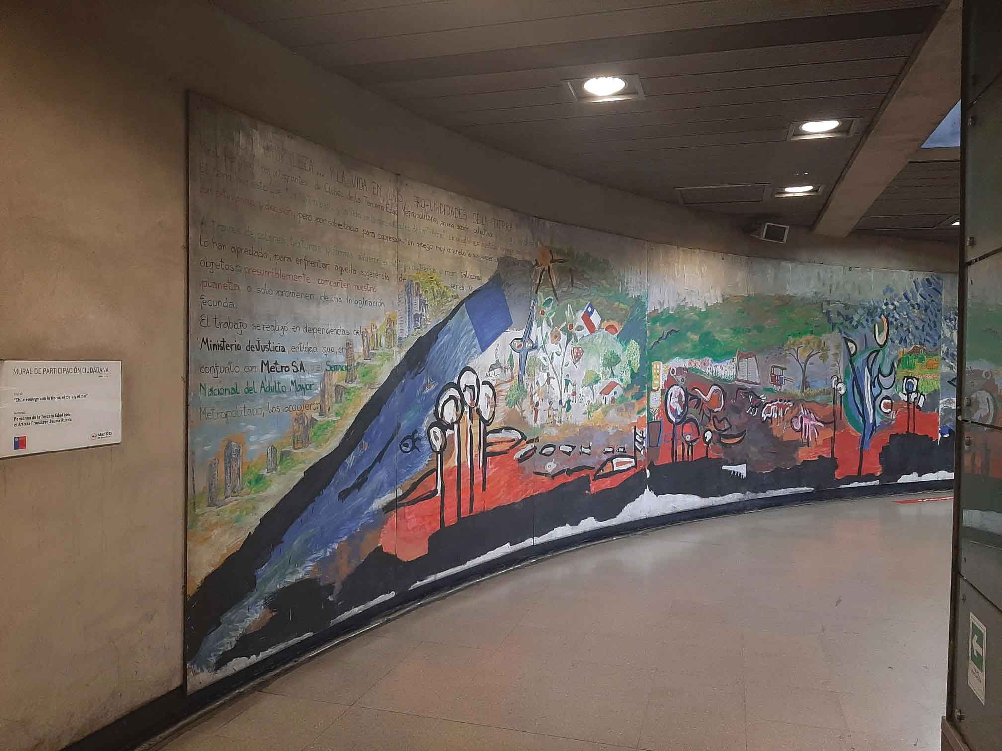 El trabajo se realizó en dependencias del Ministerio de Justicia en la Secretaría Regional Ministerial de Justicia; esta entidad, en conjunto con Metro de Santiago y el Servicio Nacional de Adultos Mayores (SENAMA) acogieron a cerca de 40 mujeres y hombres mayores de 60 años para que, mediante este mural, pudieran reflejar sus estados de ánimo y pensamientos, inspirados en lo que hay sobre y debajo de la línea del horizonte y lo compartieran cariñosamente con quienes pasan por la estación Gruta de Lourdes en la comuna de Quinta Normal.