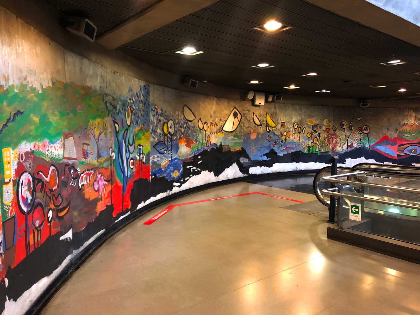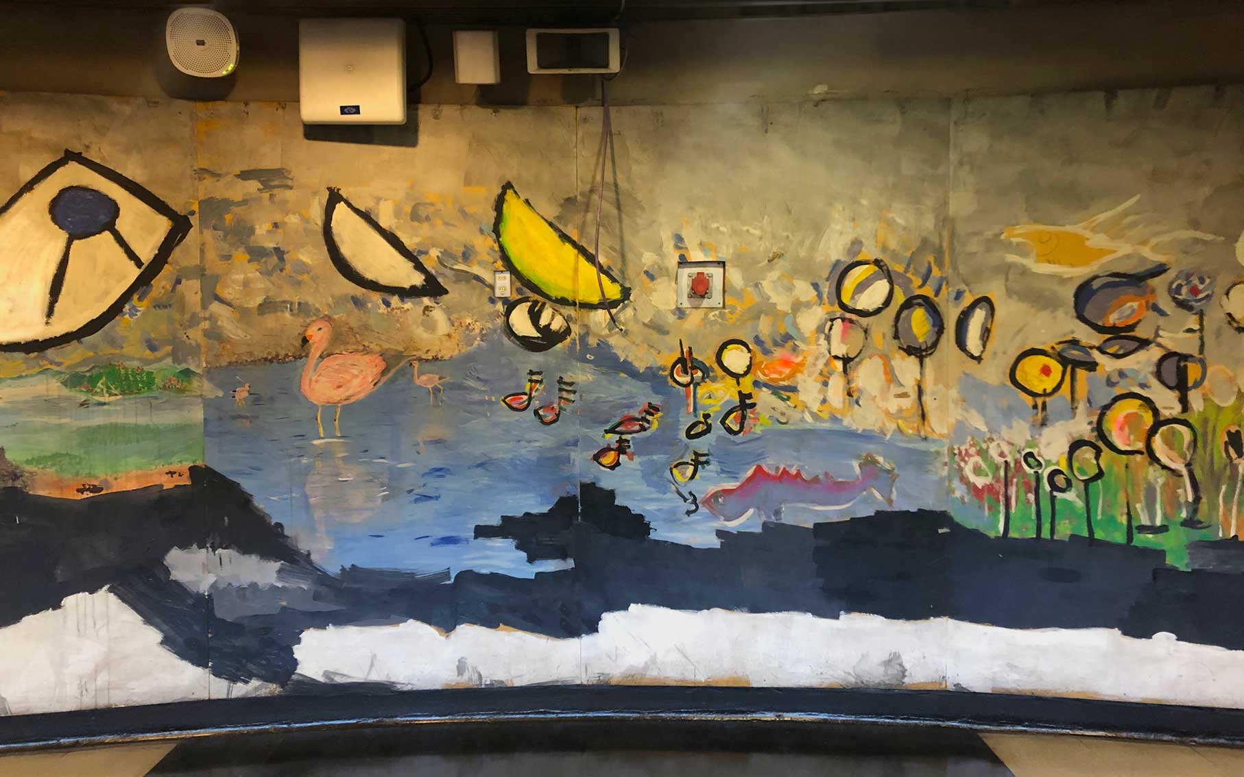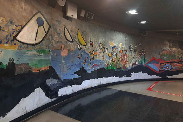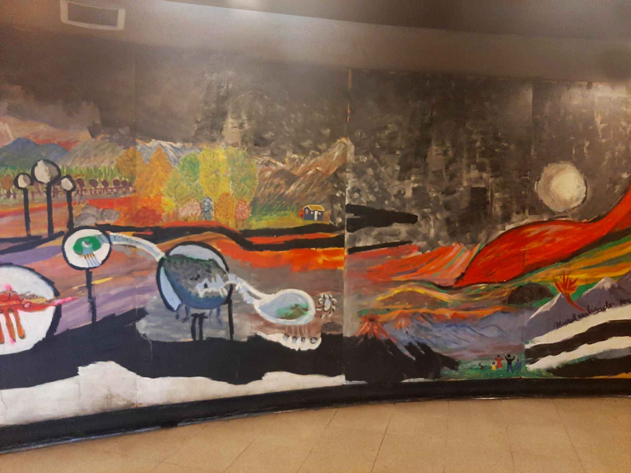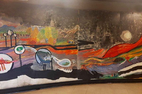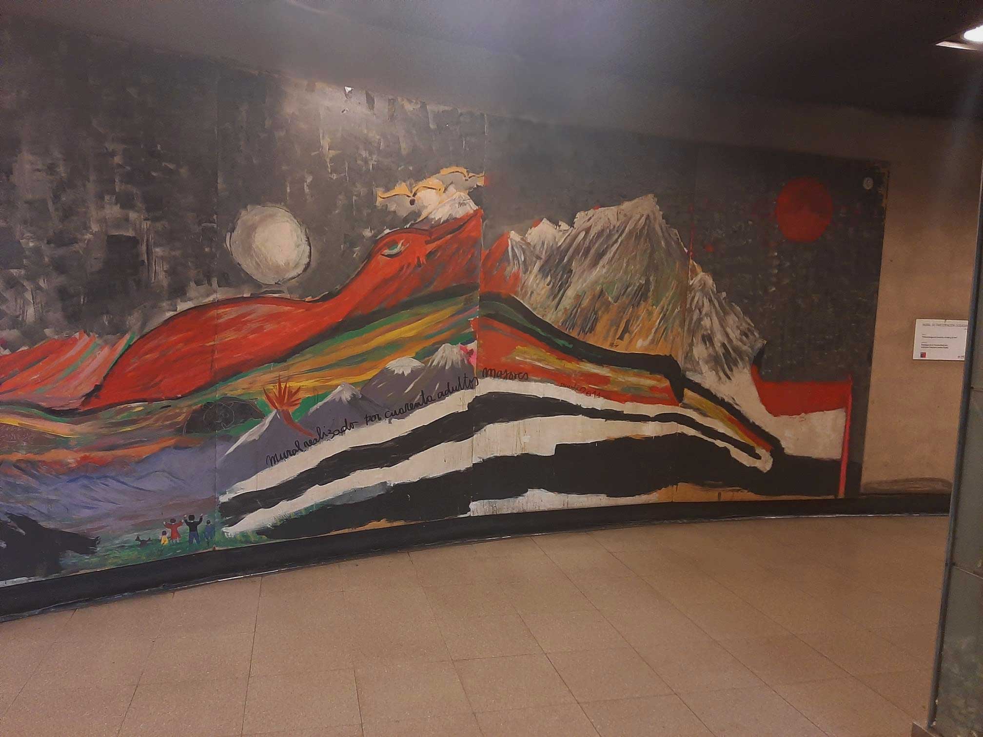El trabajo se realizó en dependencias del Ministerio de Justicia en la Secretaría Regional Ministerial de Justicia; esta entidad, en conjunto con Metro de Santiago y el Servicio Nacional de Adultos Mayores (SENAMA) acogieron a cerca de 40 mujeres y hombres mayores de 60 años para que, mediante este mural, pudieran reflejar sus estados de ánimo y pensamientos, inspirados en lo que hay sobre y debajo de la línea del horizonte y lo compartieran cariñosamente con quienes pasan por la estación Gruta de Lourdes en la comuna de Quinta Normal.