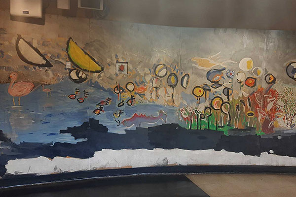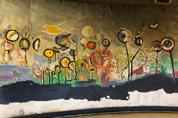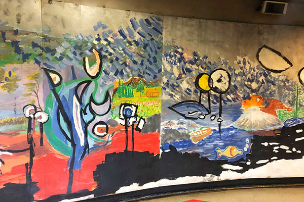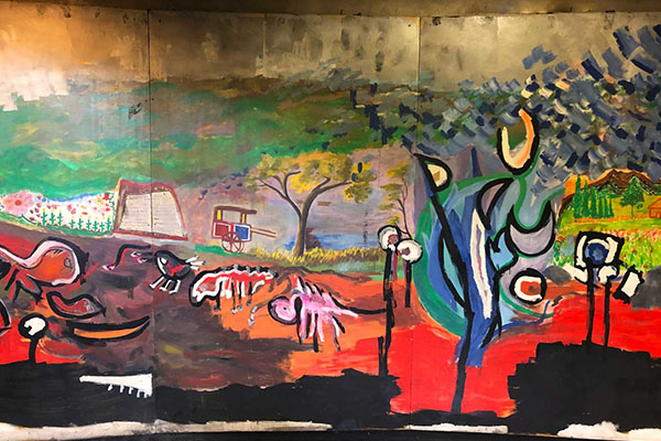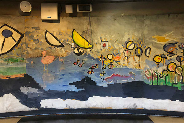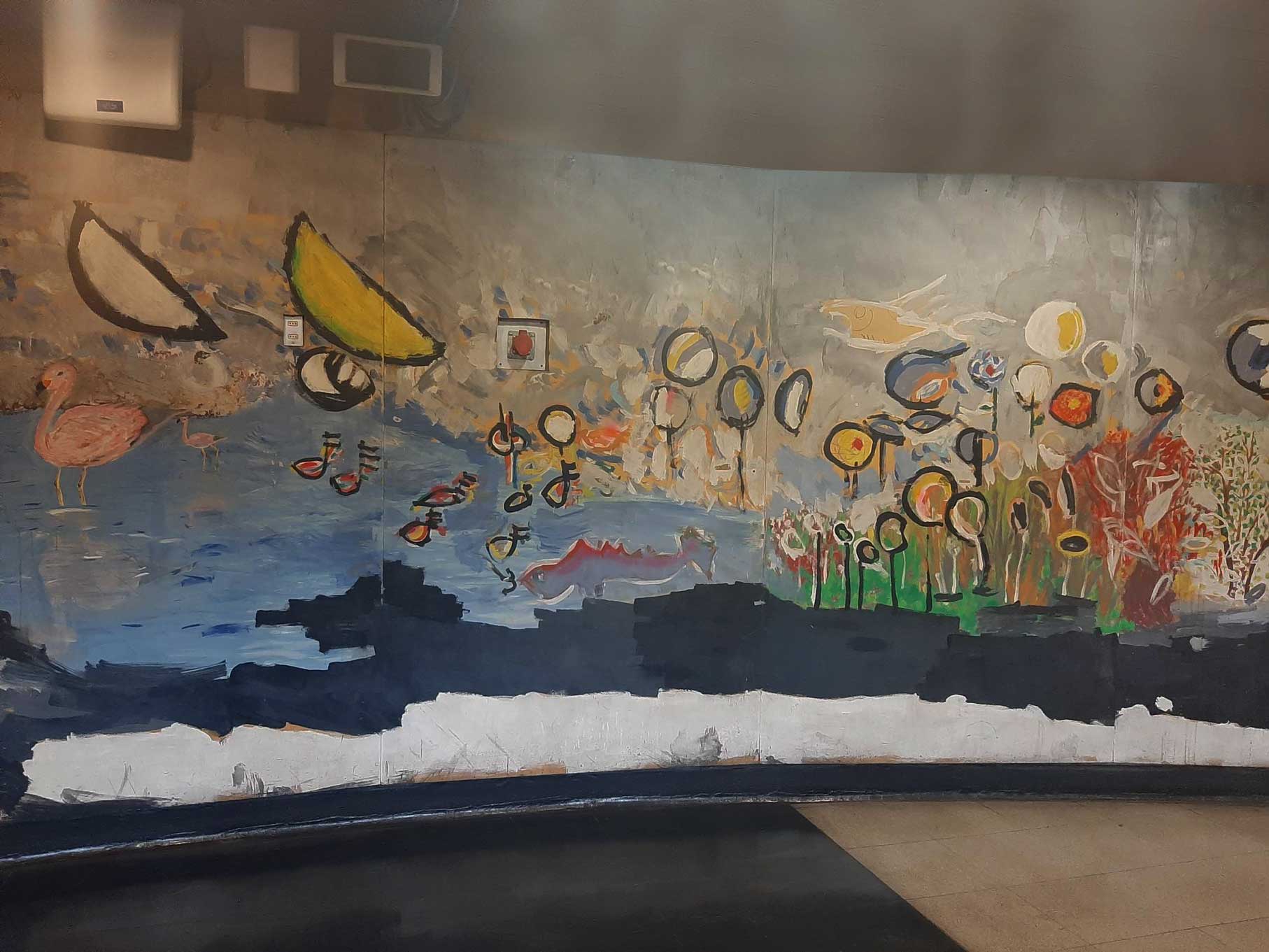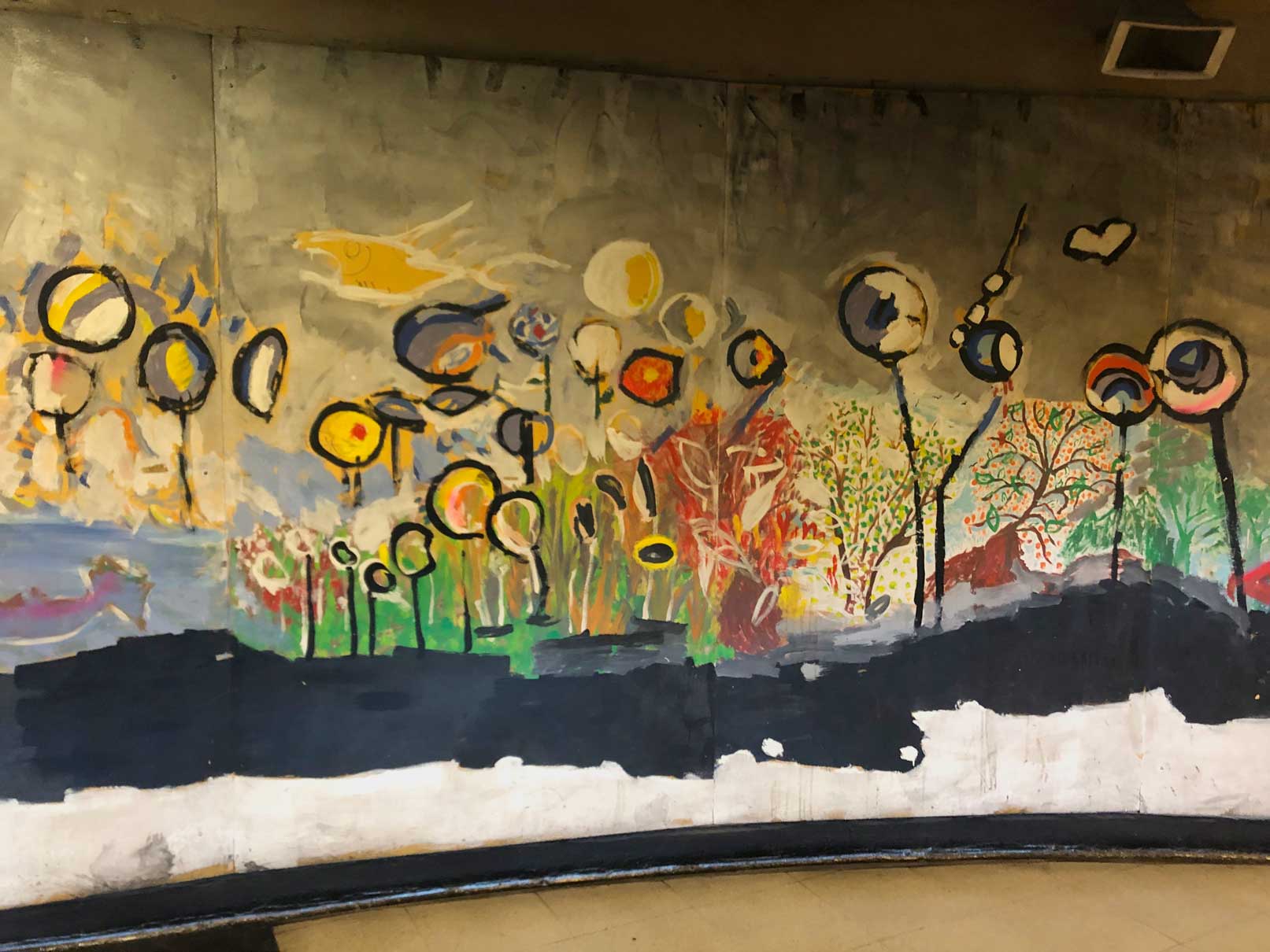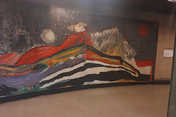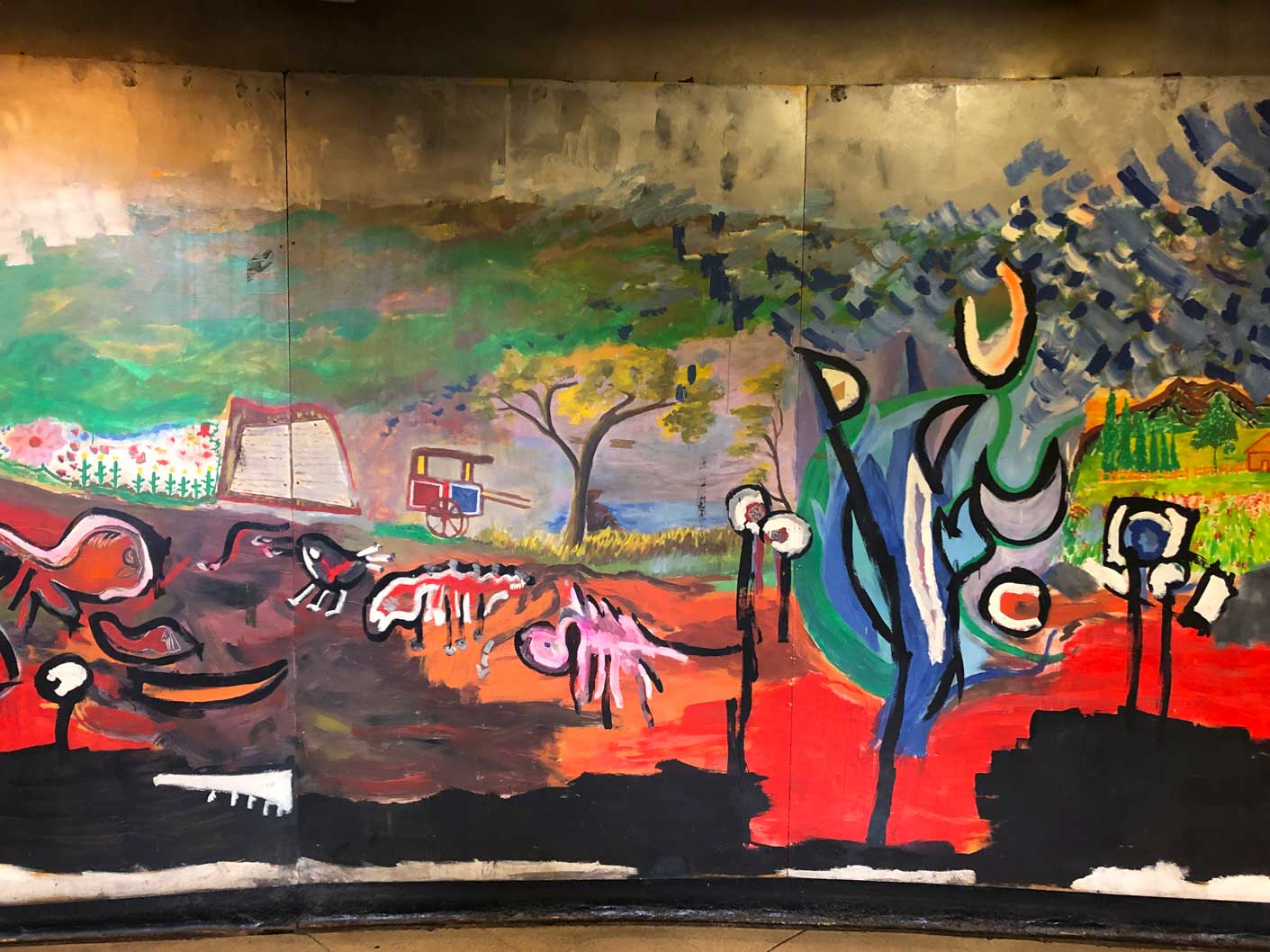 El trabajo se realizó en dependencias del Ministerio de Justicia en la Secretaría Regional Ministerial de Justicia; esta entidad, en conjunto con Metro de Santiago y el Servicio Nacional de Adultos Mayores (SENAMA) acogieron a cerca de 40 mujeres y hombres mayores de 60 años para que, mediante este mural, pudieran reflejar sus estados de ánimo y pensamientos, inspirados en lo que hay sobre y debajo de la línea del horizonte y lo compartieran cariñosamente con quienes pasan por la estación Gruta de Lourdes en la comuna de Quinta Normal.