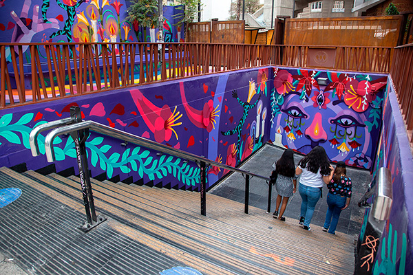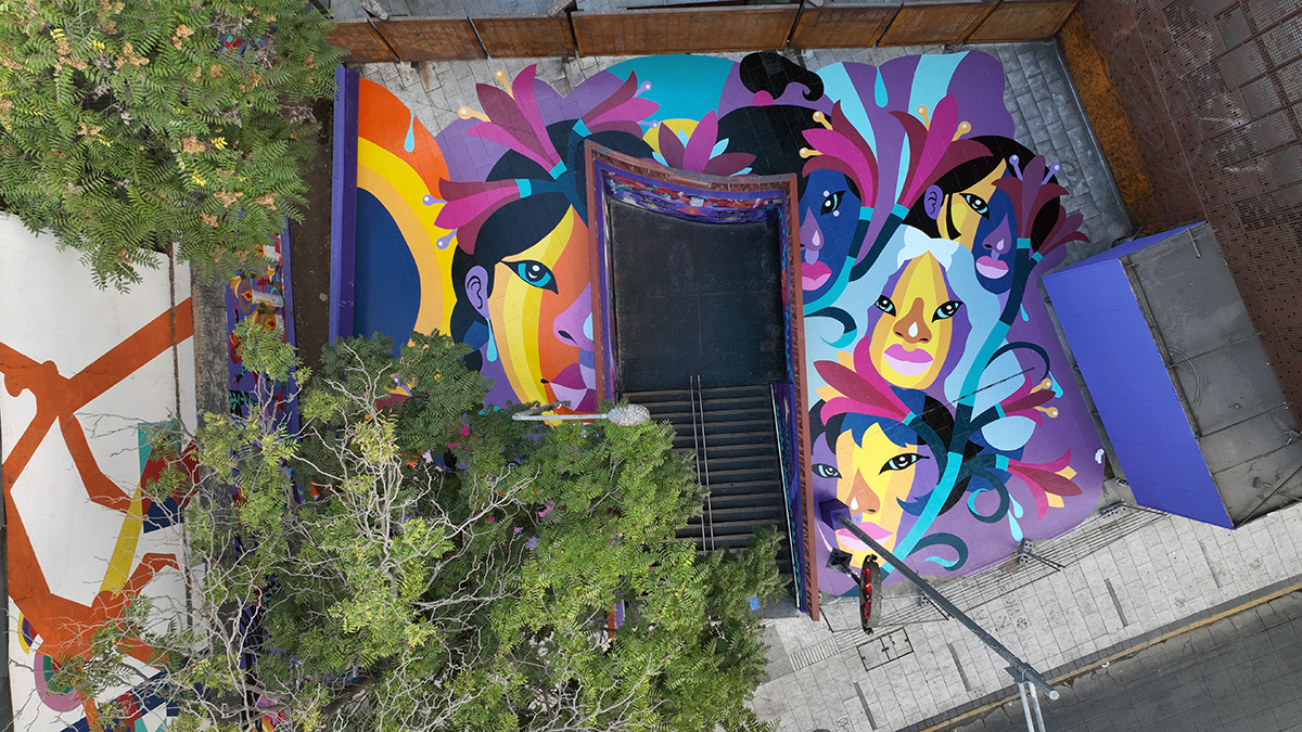 Autor: Jocelyn Arcena "Anis" Técnica: Pintura sobre muro y concreto Superficie: 380 m2 Fecha: 2022