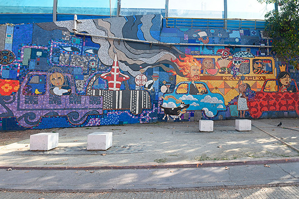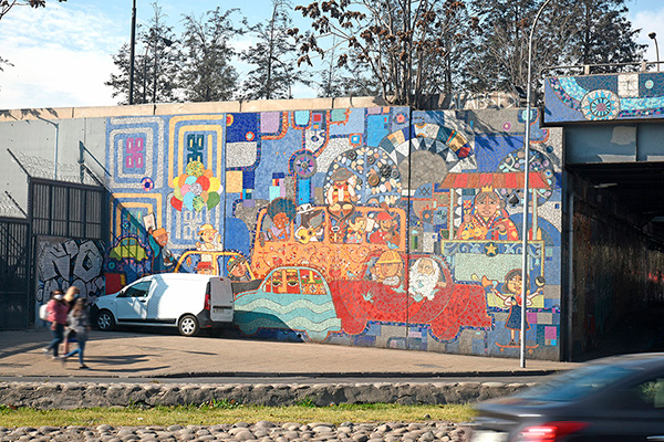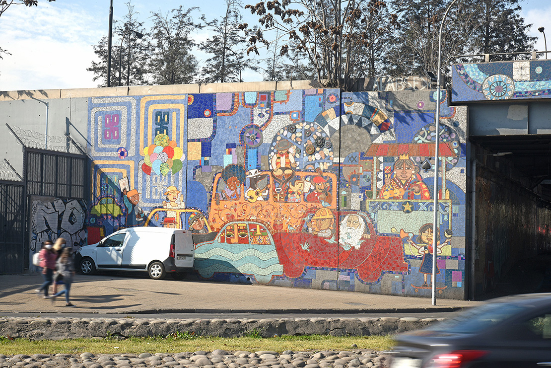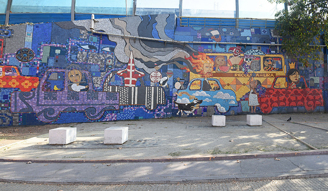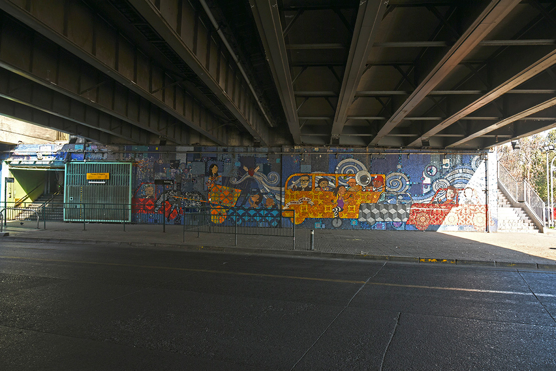 A través de un llamado a concurso realizado por la Municipalidad de Santiago, en conjunto con la concesionaria de la Autopista Central, Cerámicas Cordillera y la Asociación de Mosaiquistas, este artista se adjudicó la posibilidad de instalar su obra en el exterior de la estación Parque O'Higgins.