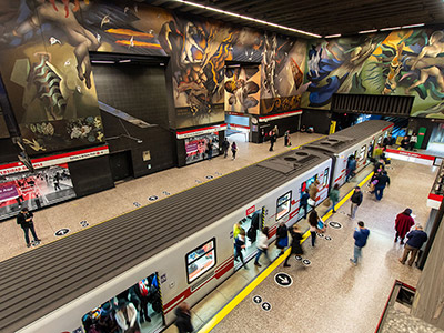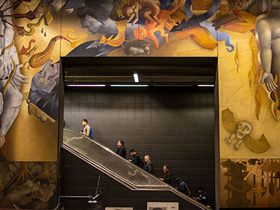 Durante cinco titánicos años, Mario Toral abandonó todo para retratar nuestra historia. Viajó, investigó y el resultado es magnífico: el mural más grande de América, 1.200 metros cuadrados y la ambición bien lograda de contarlo todo en un solo espacio. Allí están los Selk'nam acribillados en Magallanes, las deidades mapuches, Arturo Prat, la matanza de Santa María de Iquique, Huidobro, la Mistral, De Rokha, Neruda y Violeta Parra, la masacre del Seguro Obrero, La Moneda en llamas... todo. "La pintura de mural es un hecho para representar a tu pueblo, su historia, sus aspiraciones. Es un relato común entre tú y el público. Una historia en común", relata Toral.