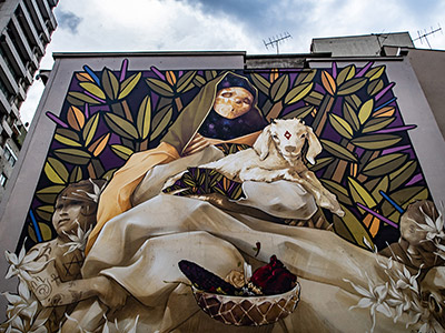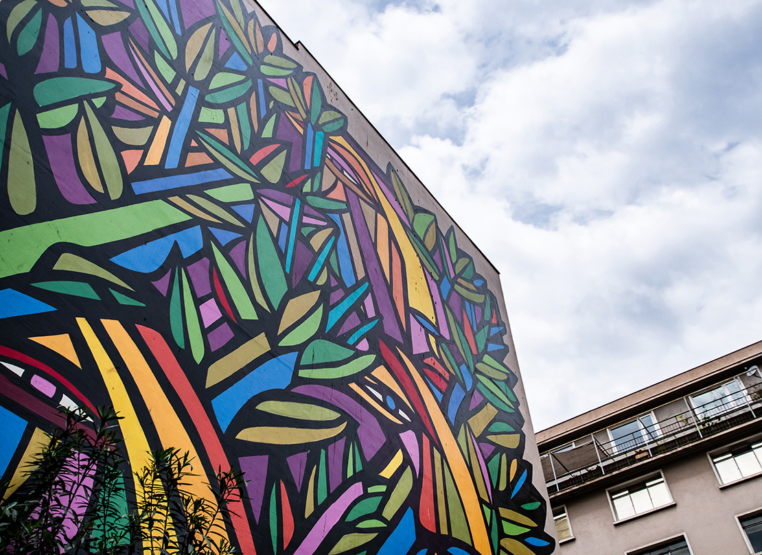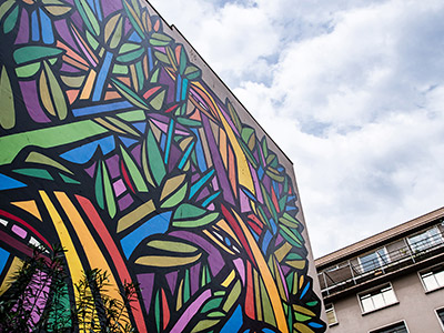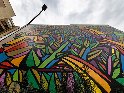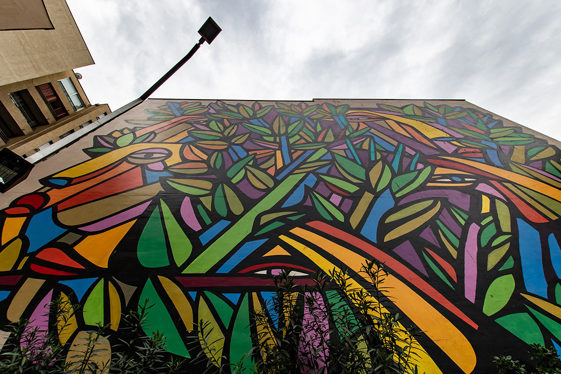 Autor: Inti Castro y Alejandro "Mono" González Técnica: Esmalte al agua sobre muro Superficie: 274 m2 Fecha: 2018
