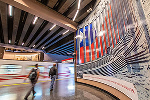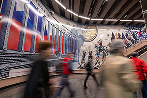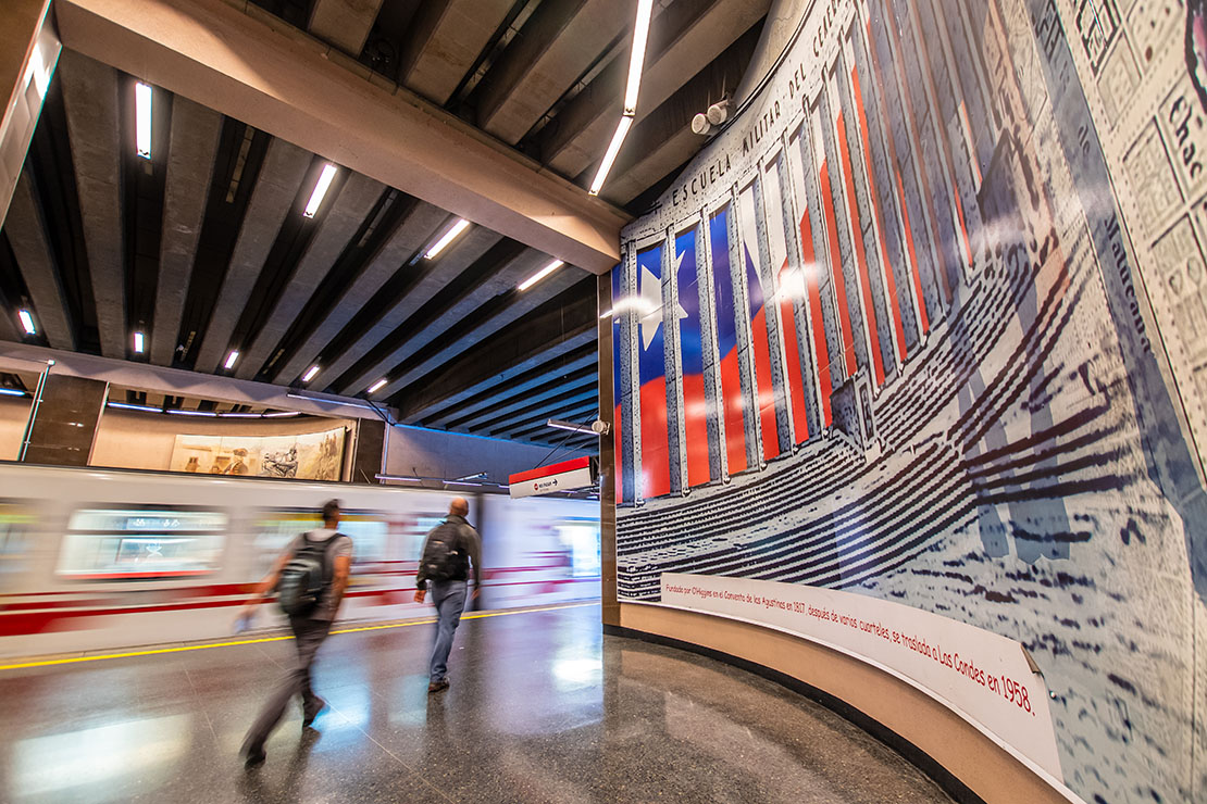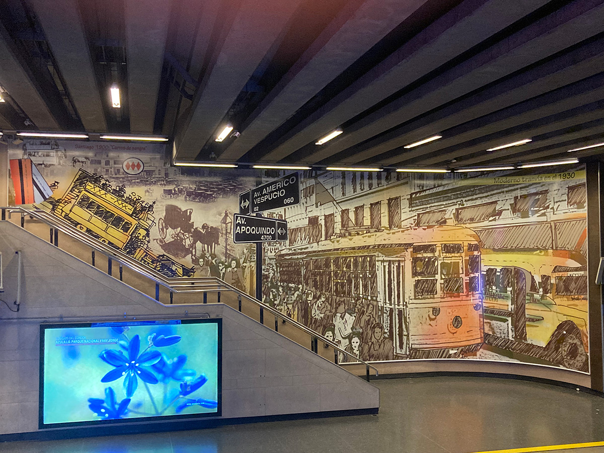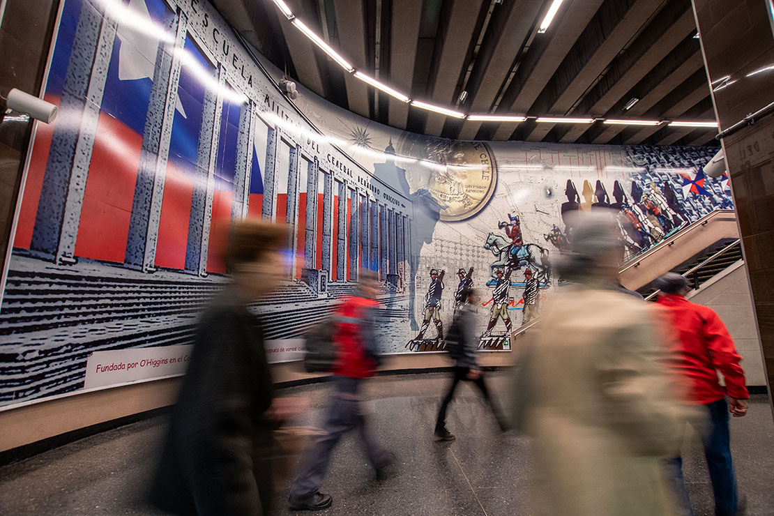 Autor: Diseñadores gráficos Universidad de Chile Técnica: Reproducción digital en PVC de alta resolución (3M) Superficie: 326 m2 Fecha: 2013