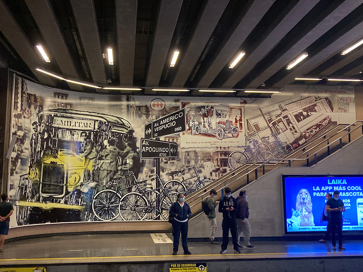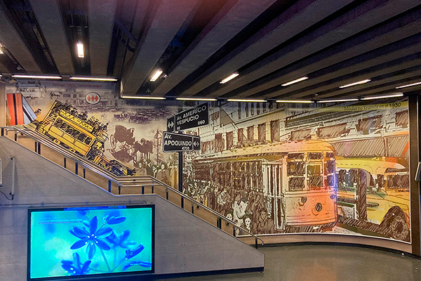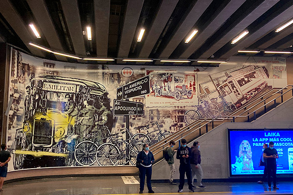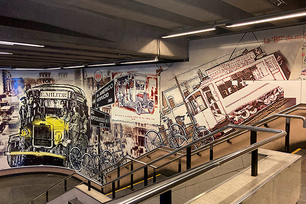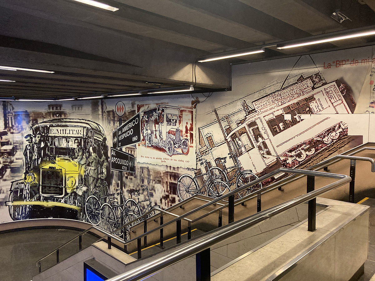 Los murales se encuentran en las 5 bajadas de escala hacia andenes, 4 ubicadas en sector oriente y una en sector poniente, frente al mural de Laureles al Libertador. Gracias a la innovación de 3M, el espacio se define como de uso mixto, es decir, el mural se encuentra pegado de forma definitiva sobre el muro y sobre él se puede montar publicidad con un soporte de pegamento transitorio que puede ser retirado sin dañar la base.