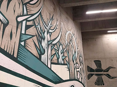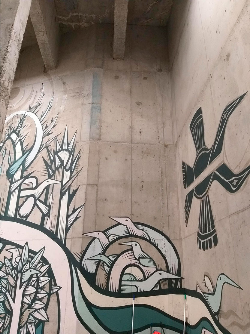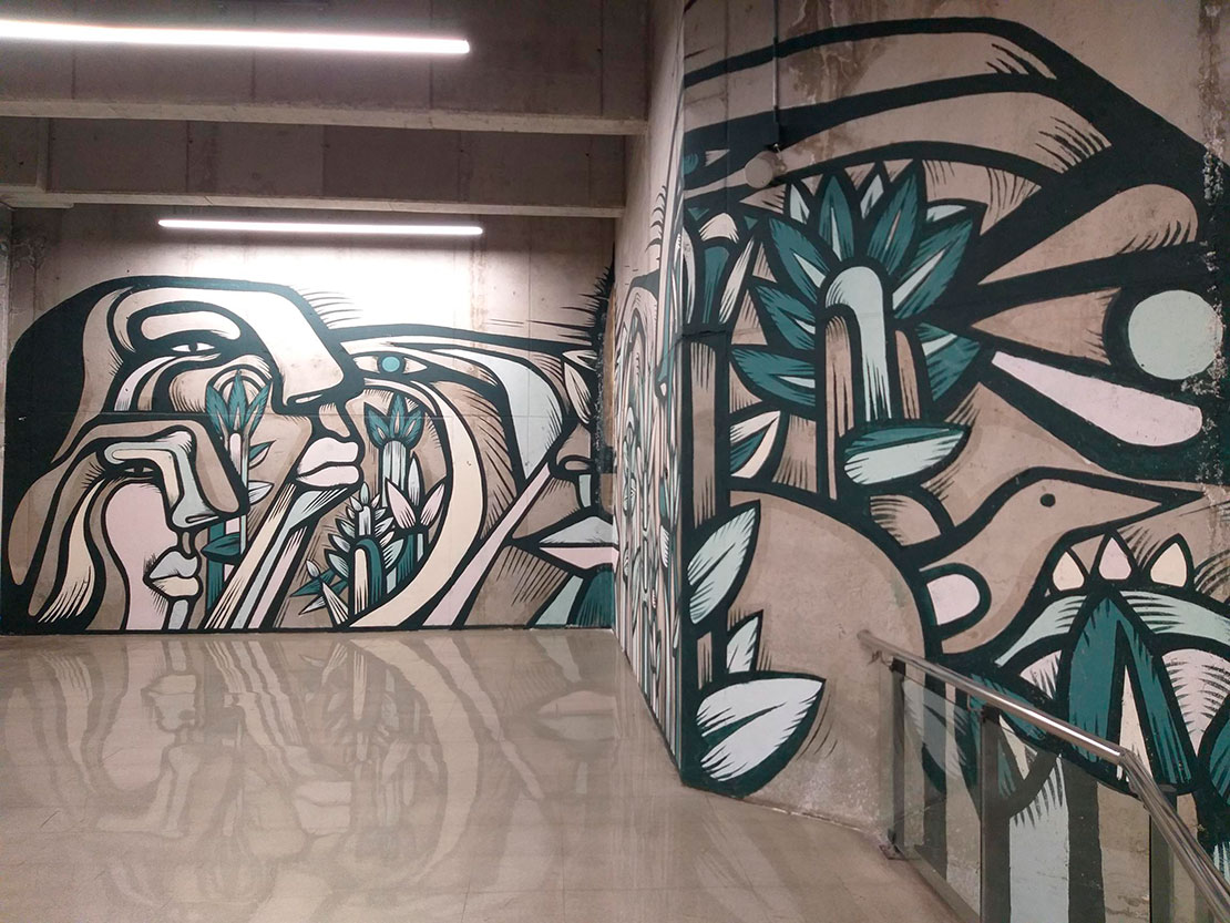 Autor: Alejandro "Mono" González Técnica: Pintura sobre hormigón en colores grises Superficie: 200 m2 Fecha: 2019