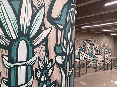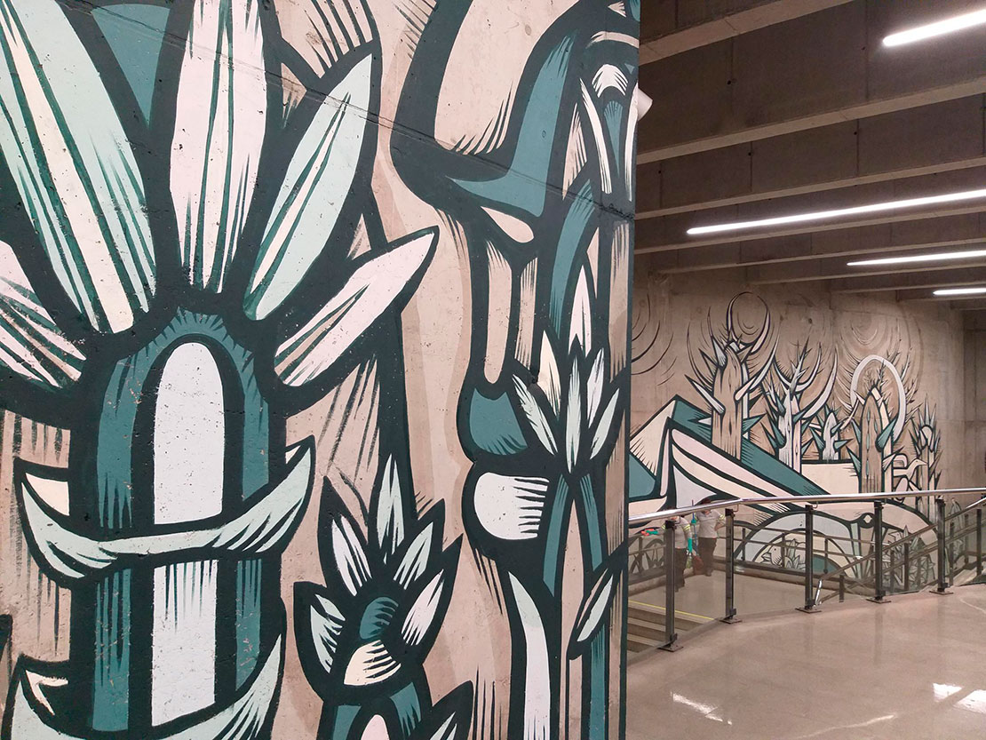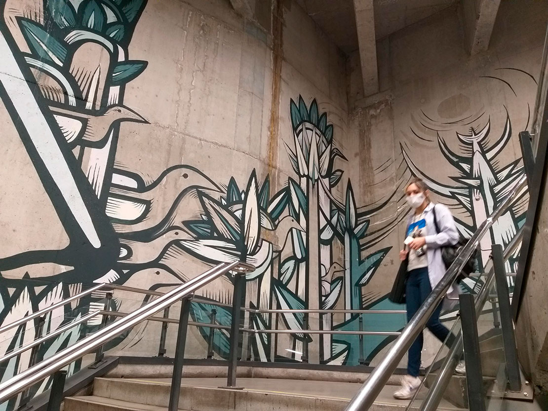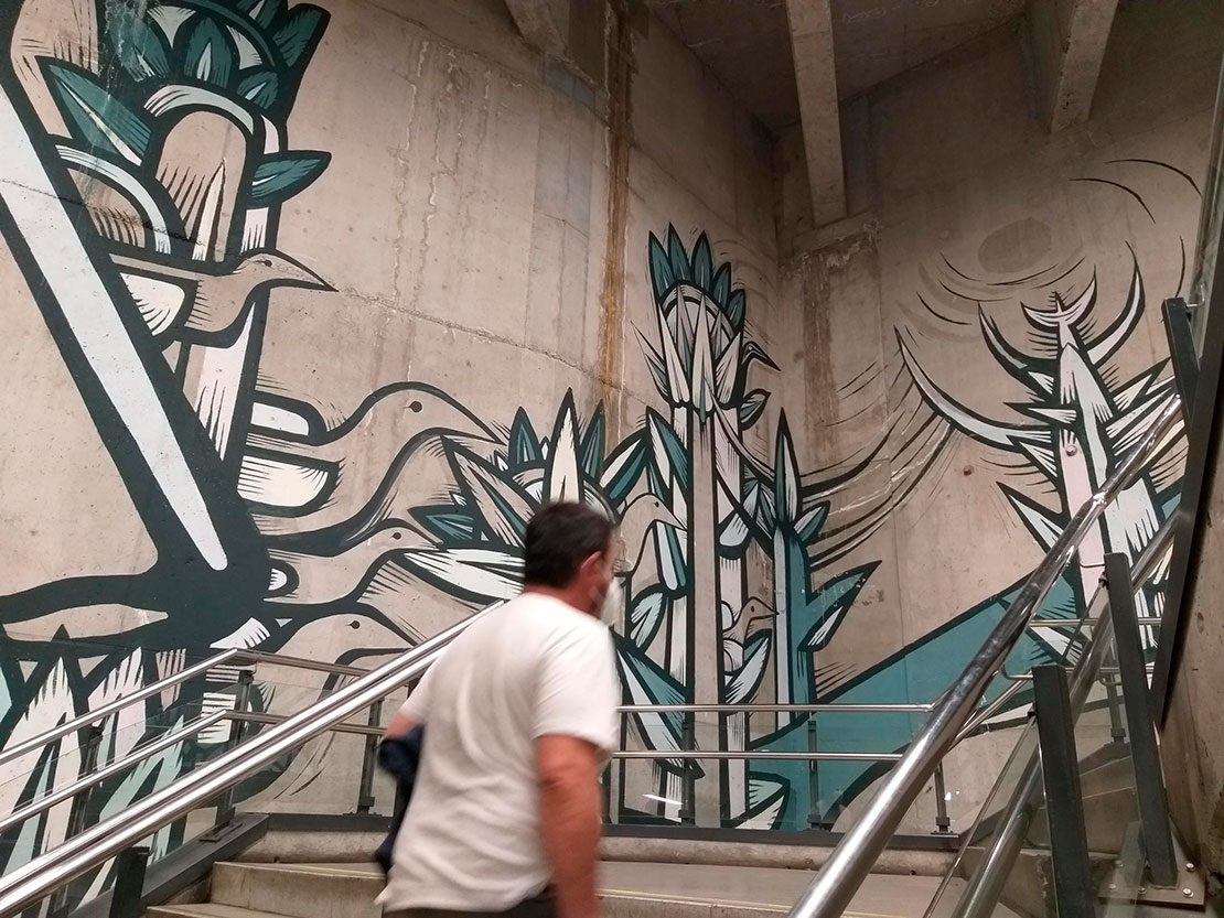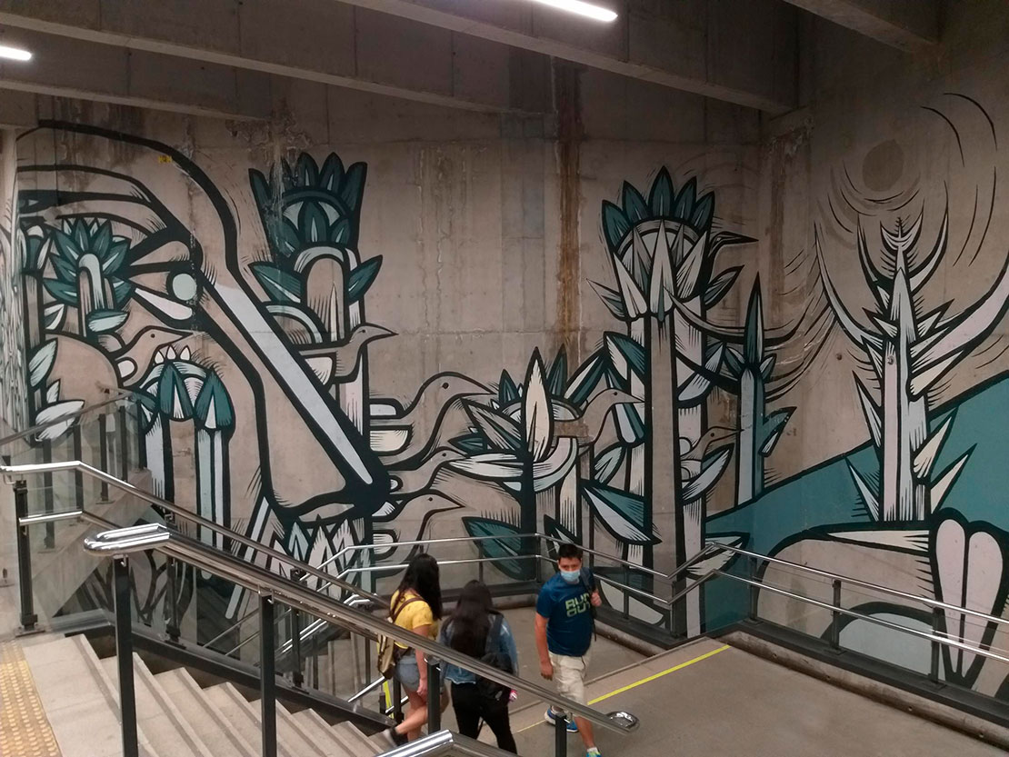 Durante el proceso de la obra, entre el 17 y el 30 de octubre de 2019, el muralista pintó in situ, directamente contra la pared, involucrando y entusiasmando a los pasajeros que transitaban por ese punto de la red. Arte vivo y en vivo para quienes pasaban a diario por este lugar y que seguramente vieron avanzar la obra desde su inicio hasta su final. Personas que pasaban por un costado, compartiendo con el artista y sacándose fotos junto al mural. Una tremenda experiencia que se convirtió en el último MetroArte antes que Metro iniciara el proceso de reconstrucción.