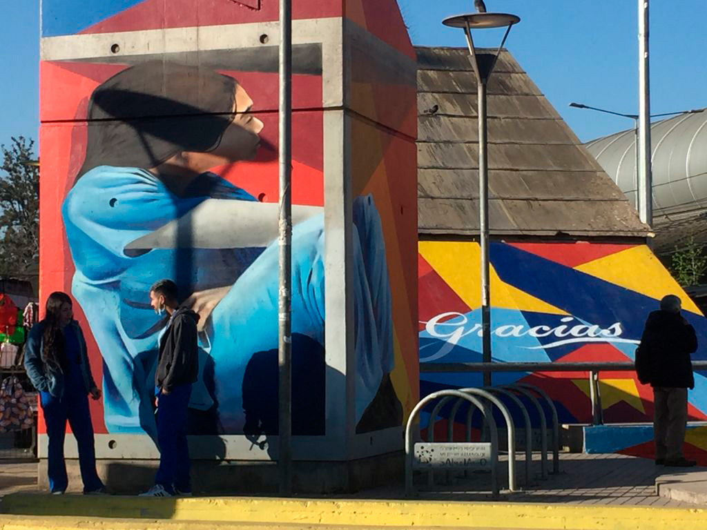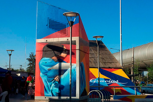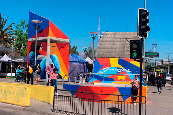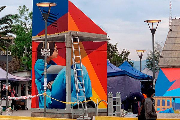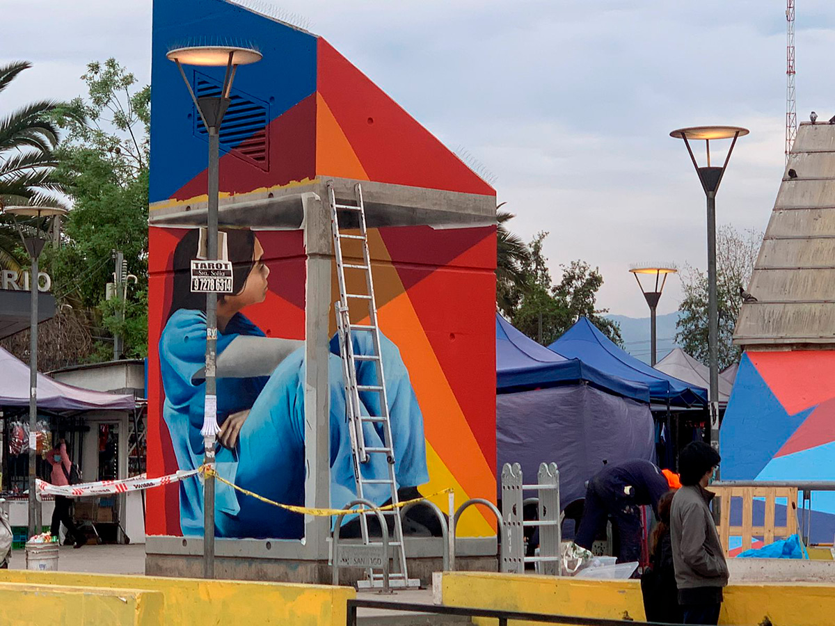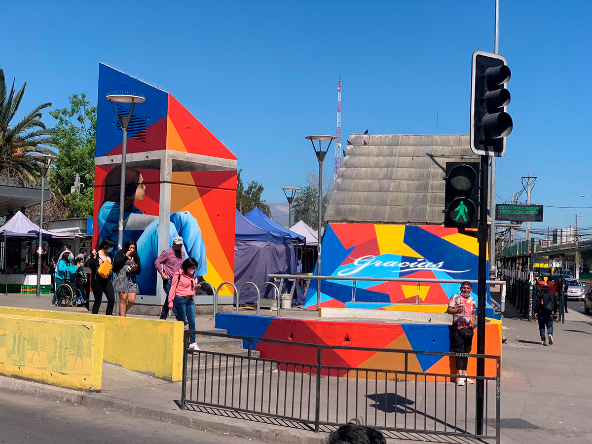 La obra se encuentra en el exterior de la estación, en unos de los accesos y en el cubículo del ascensor, justo frente al recinto asistencial Sótero del Río. Este proyecto es un trabajo en conjunto de la Corporación 3xi, Entel, Sodimac, Ceresita, Photio y la CPC que busca agradecer y alentar a quienes han sido clave en el manejo de la pandemia de Covid 19.