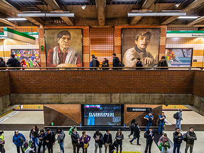 "Todos las personas se merecen un retrato". Esa fue la premisa que el artista Guillermo Lorca usó para seleccionar a personas normales y corrientes para celebrar el Bicentenario. Efectivamente los retratos de gran formato fueron privilegio de autoridades y artistas, pero al seleccionar a estos 6 modelos, todos nos sentimos un poco partícipes del proceso. Al alcance del público, lucen impecables acompañándonos en nuestro transitar por la estación Baquedano.